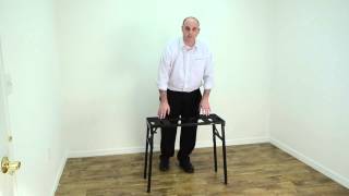 • Estación de trabajo plegable con soporte en T ajustable con capacidad para 250 libras de peso ;