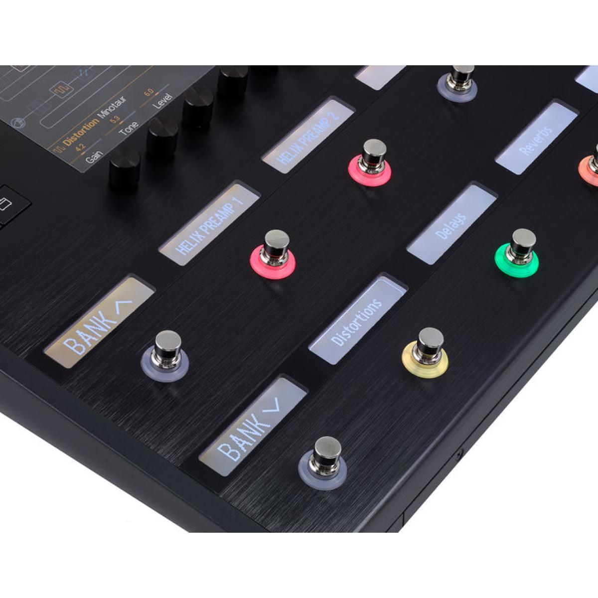 El Line 6 Helix Floor Guitarra Processor elimina las empinadas curvas de aprendizaje que a menudo se asocian a la consecución del tono perfecto con equipos enormemente potentes. Gracias a los duraderos interruptores de pie sensibles al tacto, el Helix Floor le permite seleccionar un bloque de efectos para editarlo simplemente tocándolo. En combinación con una gran pantalla LCD de 6,2'' y 800 x 400 píxeles, las interminables búsquedas en los menús son cosa del pasado, ofreciéndole el mismo nivel de control que esperaría de un editor externo. Conseguir un gran tono a altas velocidades es rápido y fácil, con anillos LED de colores y tiras de garabatos personalizables que te permiten saber lo que hace cada pedal de un vistazo.