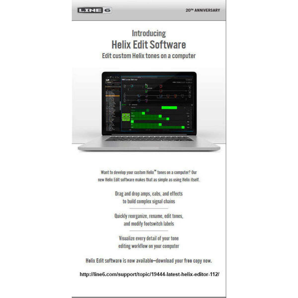 Line 6 han lanzado la actualización de firmware 2.21, que mejora las características lanzadas en la V2.01 para el Helix. Con una nueva colección de modelos y mejoras, el Helix Floor ofrece una experiencia de interpretación aún mayor. La V2.01 ha añadido nuevas mejoras en los controles variax que abren un enorme abanico de nuevas posibilidades tonales, junto con nuevas características que ayudan a mejorar el rendimiento. La V2.21 optimiza el rendimiento de sus unidades. Esta actualización del firmware le garantiza el mejor rendimiento posible de su pedal. Las futuras actualizaciones pueden adquirirse en el sitio web Line 6.