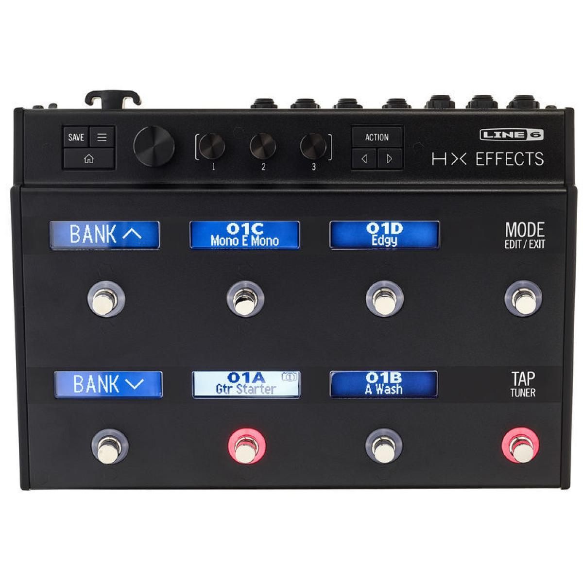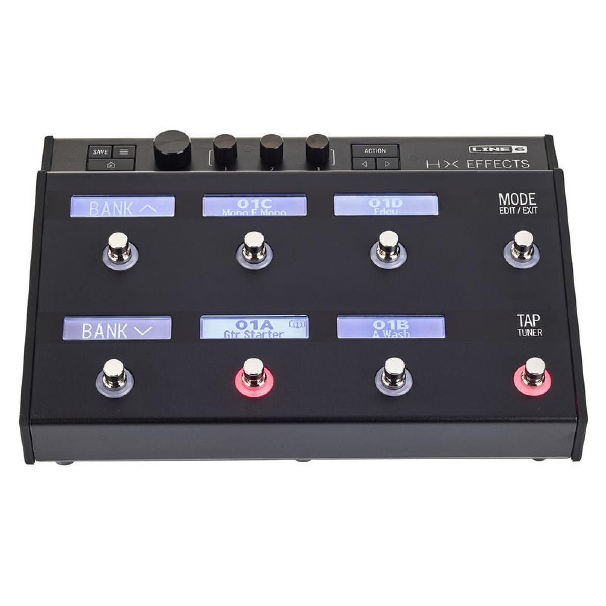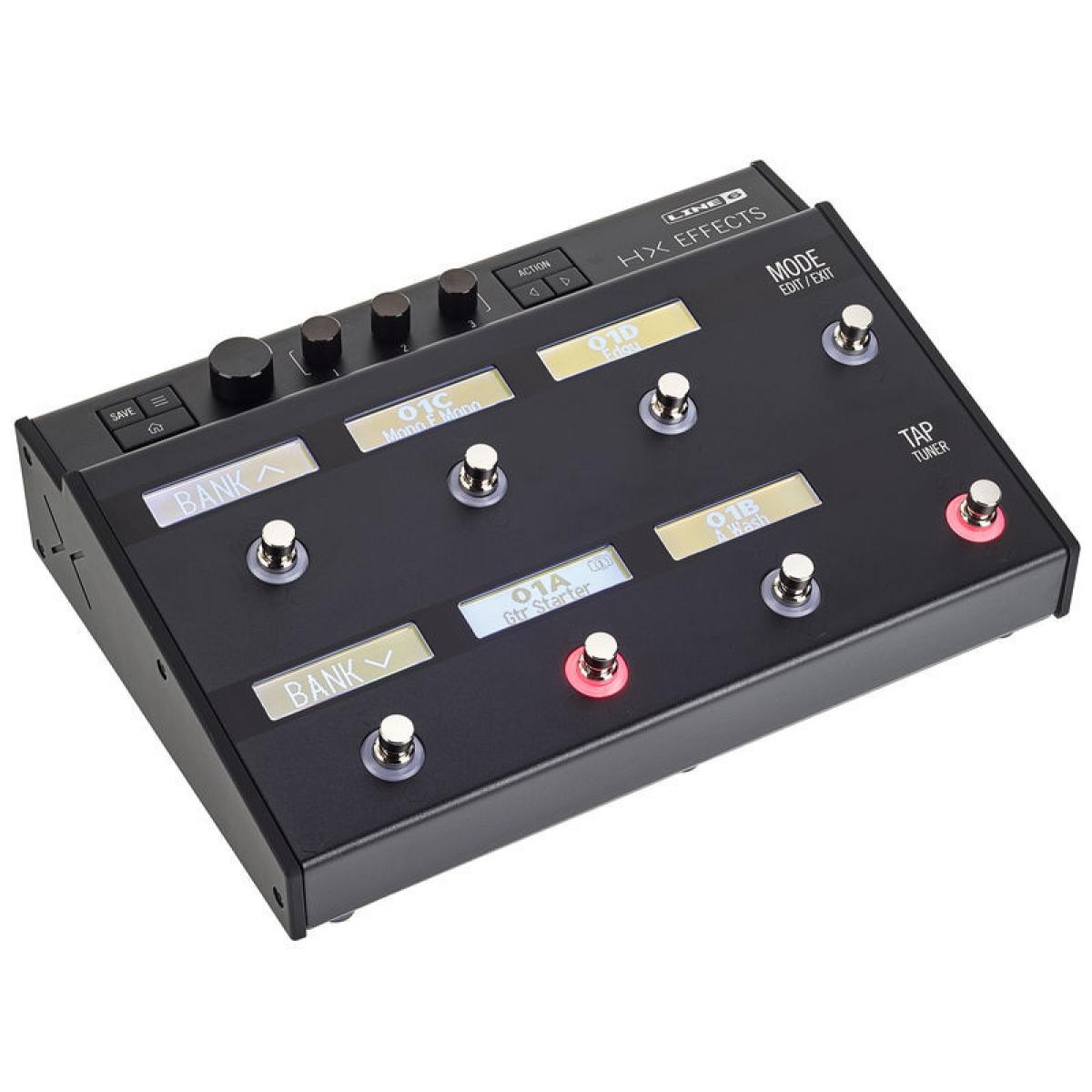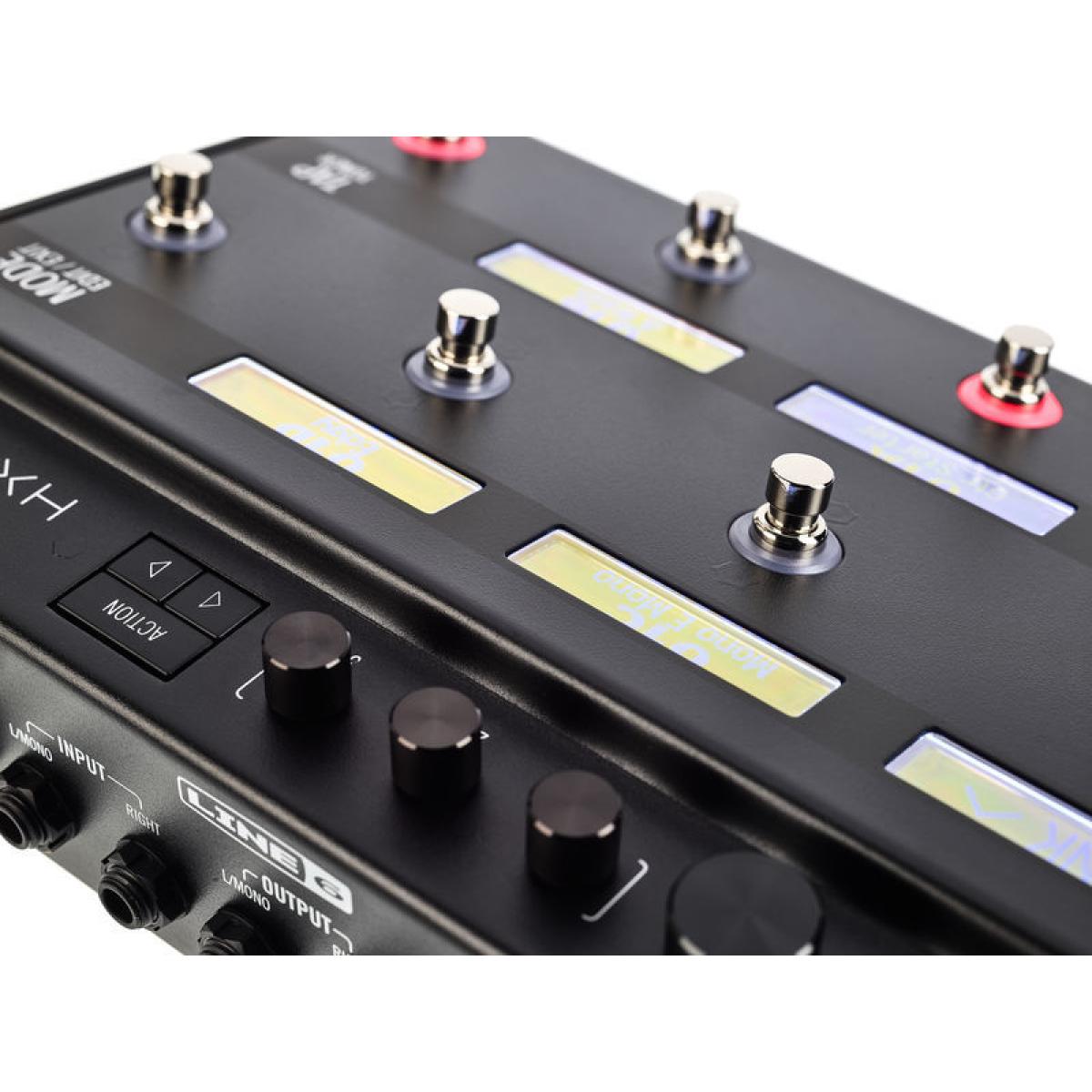 El Helix HX incluye más de 100 modelos de efectos, entre los que se encuentran los populares efectos heredados de Line 6 como el DL4 delay. El Helix HX cuenta con muchas de las potentes funciones del Helix, incluidas las pantallas LED "Scribble Strip" para crear nombres en patch y etiquetar automáticamente los pedales. También incluye anillos LCD codificados por colores y conmutadores de pie capacitivos táctiles que permiten acceder a los ajustes de los pedales simplemente colocando un dedo en el conmutador de pie metálico.