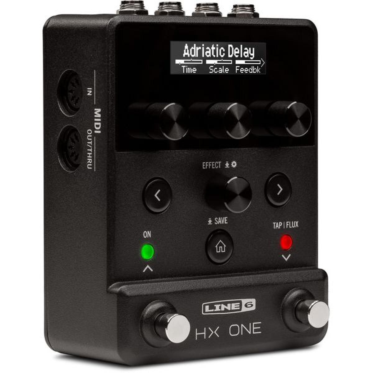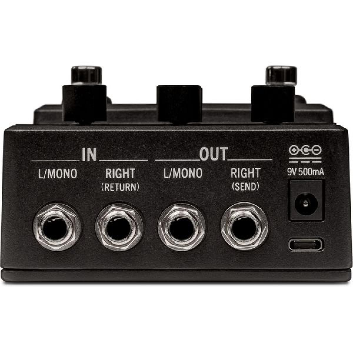 • Selección y ajuste de efectos mediante pantalla OLED y controles giratorios correspondientes MIDI In y Out/Thru