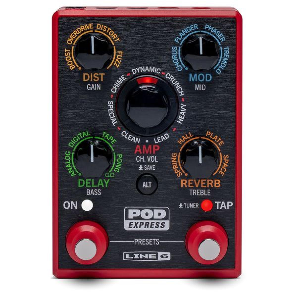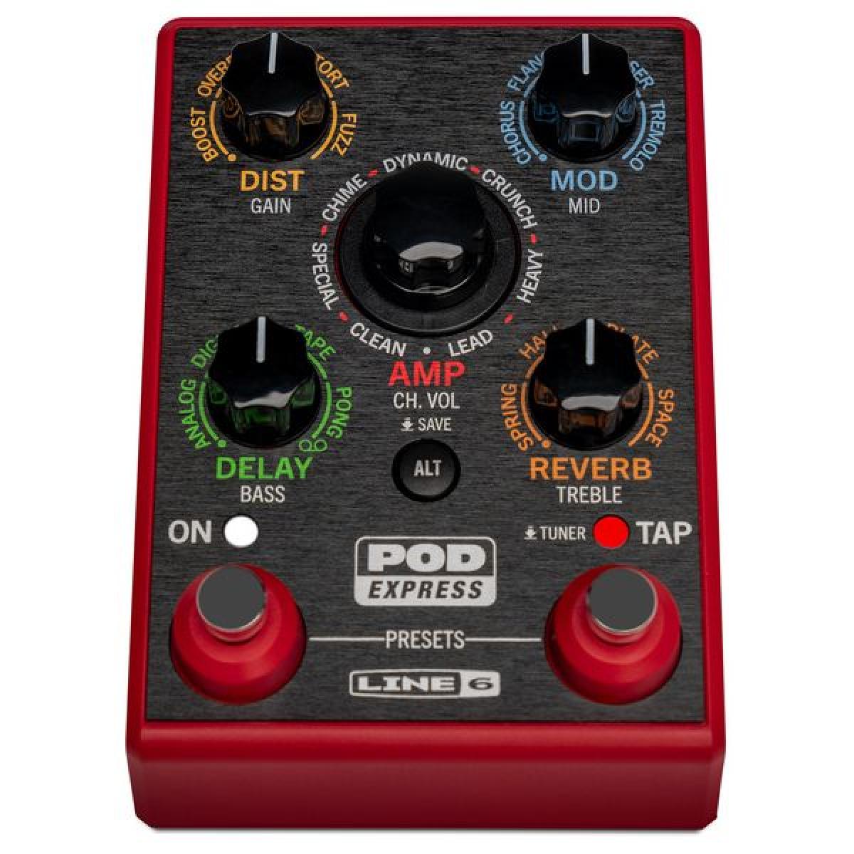 • controles: Amp. Distorsión, Modulación, Retardo, Reverberación;
