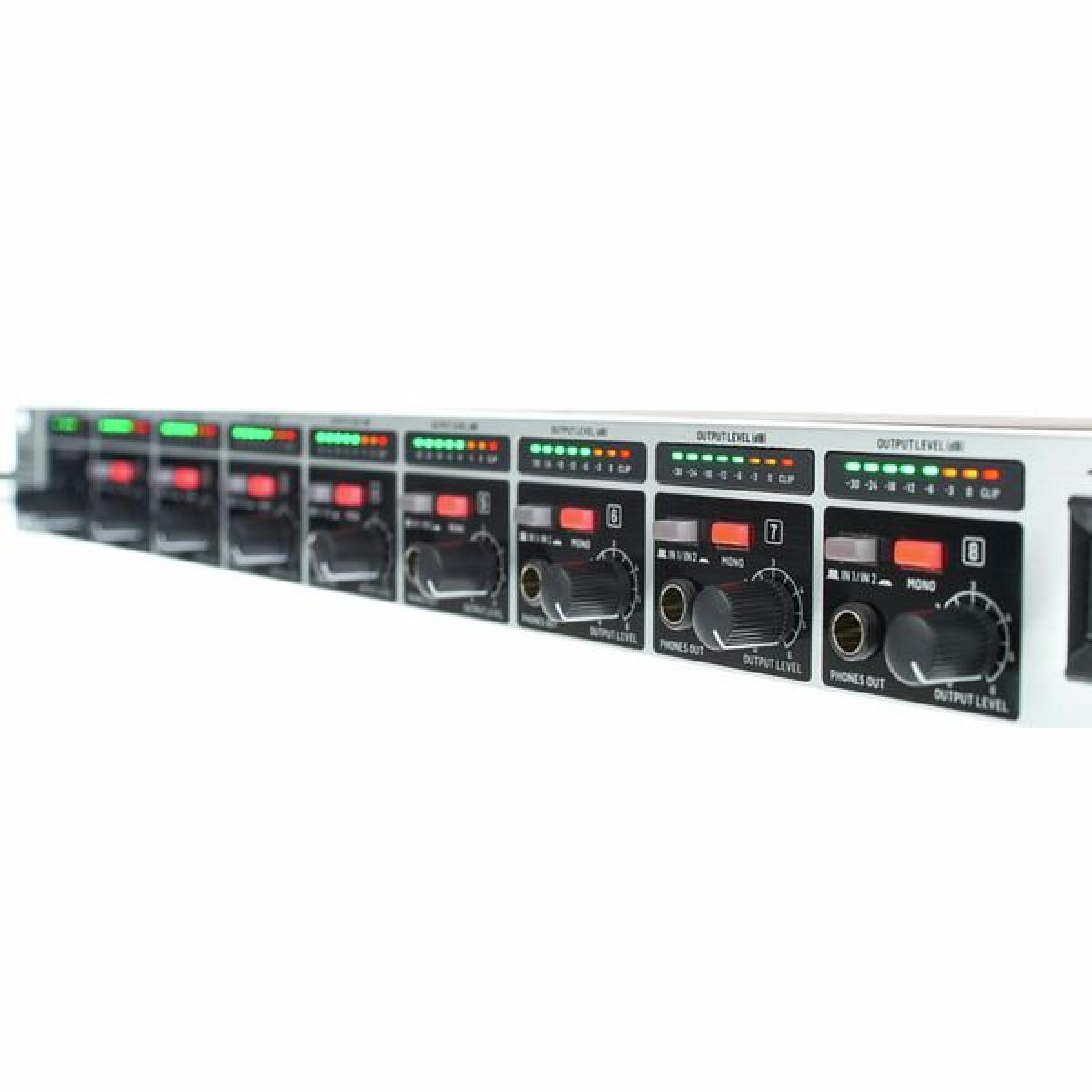 • 2 entradas principales estéreo para dos mezclas independientes de los 8 canales de salida ;