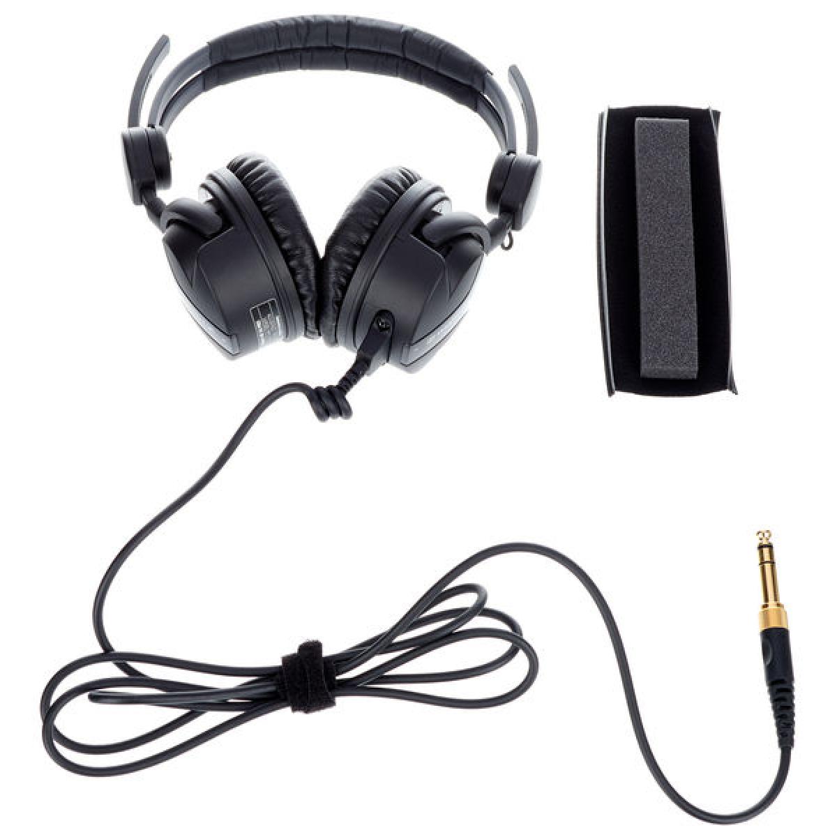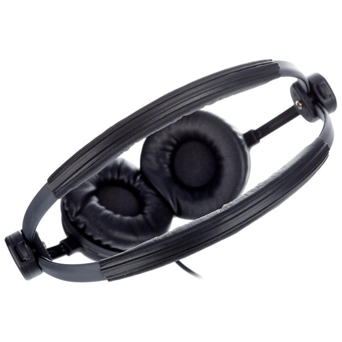 Auriculares Para aplicaciones de monitores profesionales para transmisiones de radio y televisión ActiveGard (conmutable encendido / apagado) - Para proteger contra picos de audio de más de 105 dBS Diseño de diadema dividida Cerrado Supraaural Impedancia dinámica: 100 Ω SPL: 105 dB Máx. Nivel de entrada: 200 mW Rango de frecuencia: 20 / 18.000 Hz Cable de 1,5 m con conector jack de 3,5 mm Peso con cable: 219 g Peso sin cable: 171 gIncl. adaptador a jack de 6,3 mm
