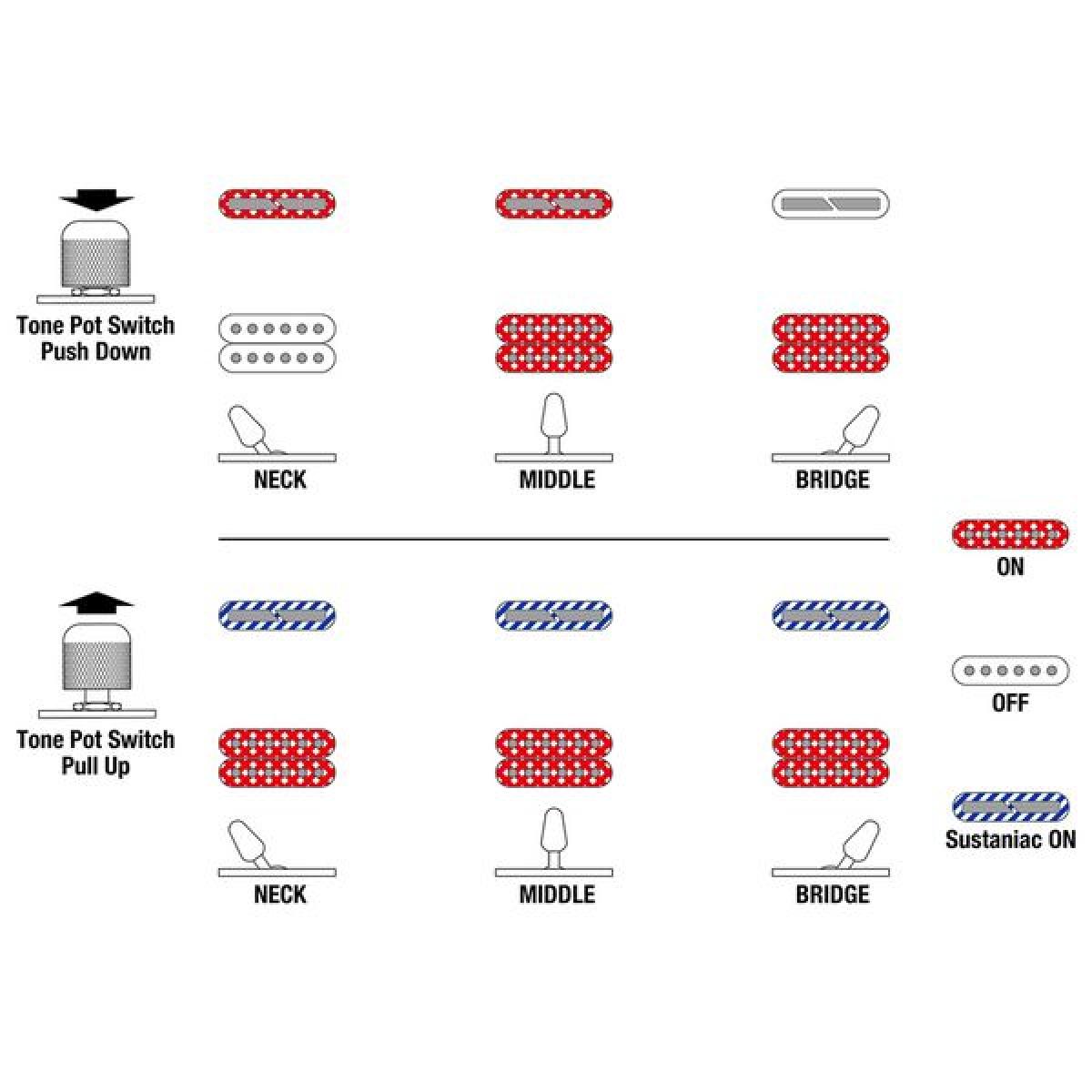 • Conmutador selector mini para modos Sustainiac de 3 vías ;