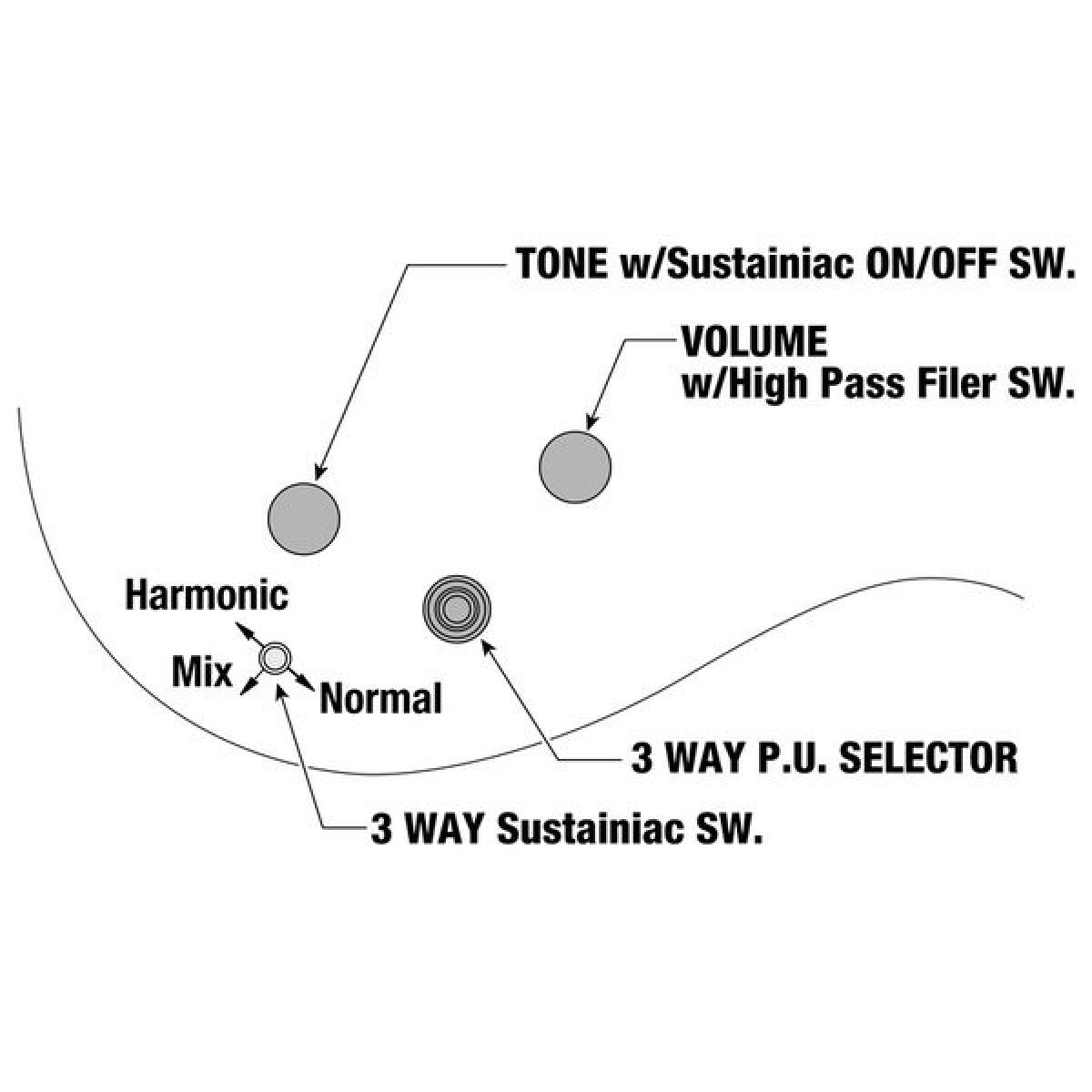 • 1 regulador de tono con función Push/Pull para Sustainiac On/Off ;