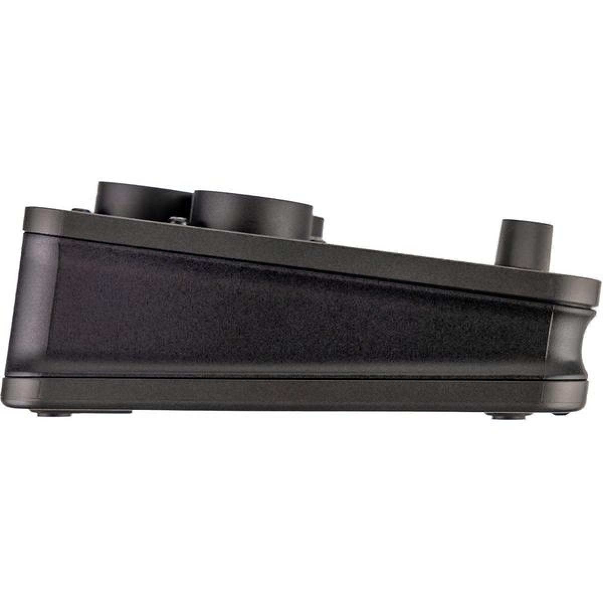 • 8 canales, cada uno con ecualizador de 3 bandas, dos envíos auxiliares, efecto interno, panorama, nivel, botón de silencio y codificador con anillo LED ;