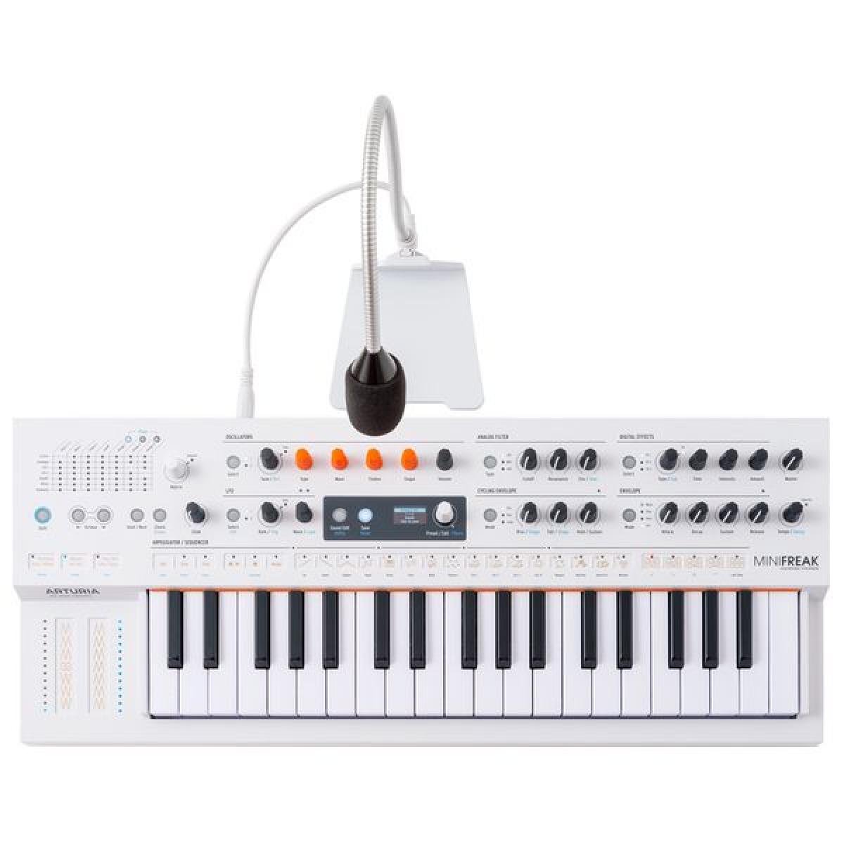 • Incluye descarga del software MiniFreak V, micrófono de cuello de cisne (30 cm), soporte para micrófono, fuente de alimentación externa (12 V CC, 1 A), cable USB (C/A), guía de inicio rápido, tarjeta de registro ;