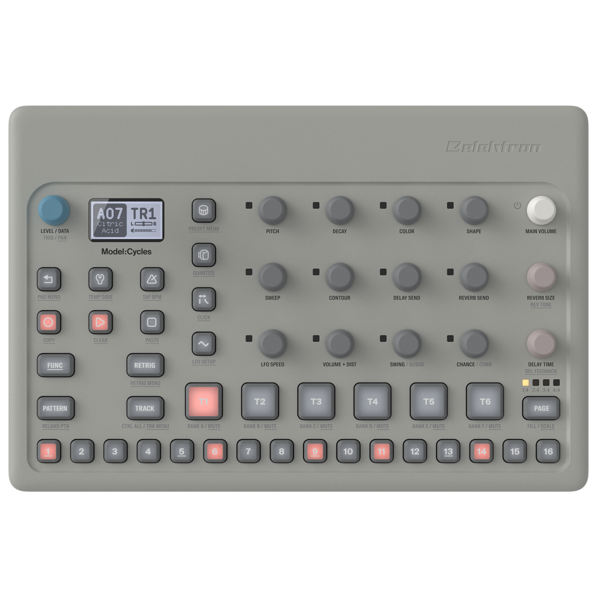 Basándose en el diseño de su predecesor, (el Elektron Model:Samples) Model:Cycles ofrece una capacidad de esculpir sonidos sin precedentes. La paleta de sonidos única y versátil le permite utilizar una amplia gama de tonos y sonidos, gracias a la mezcla de parámetros tanto percusivos como melódicos. Las seis máquinas hacen referencia a los seis botones principales etiquetados de T1 a T6.