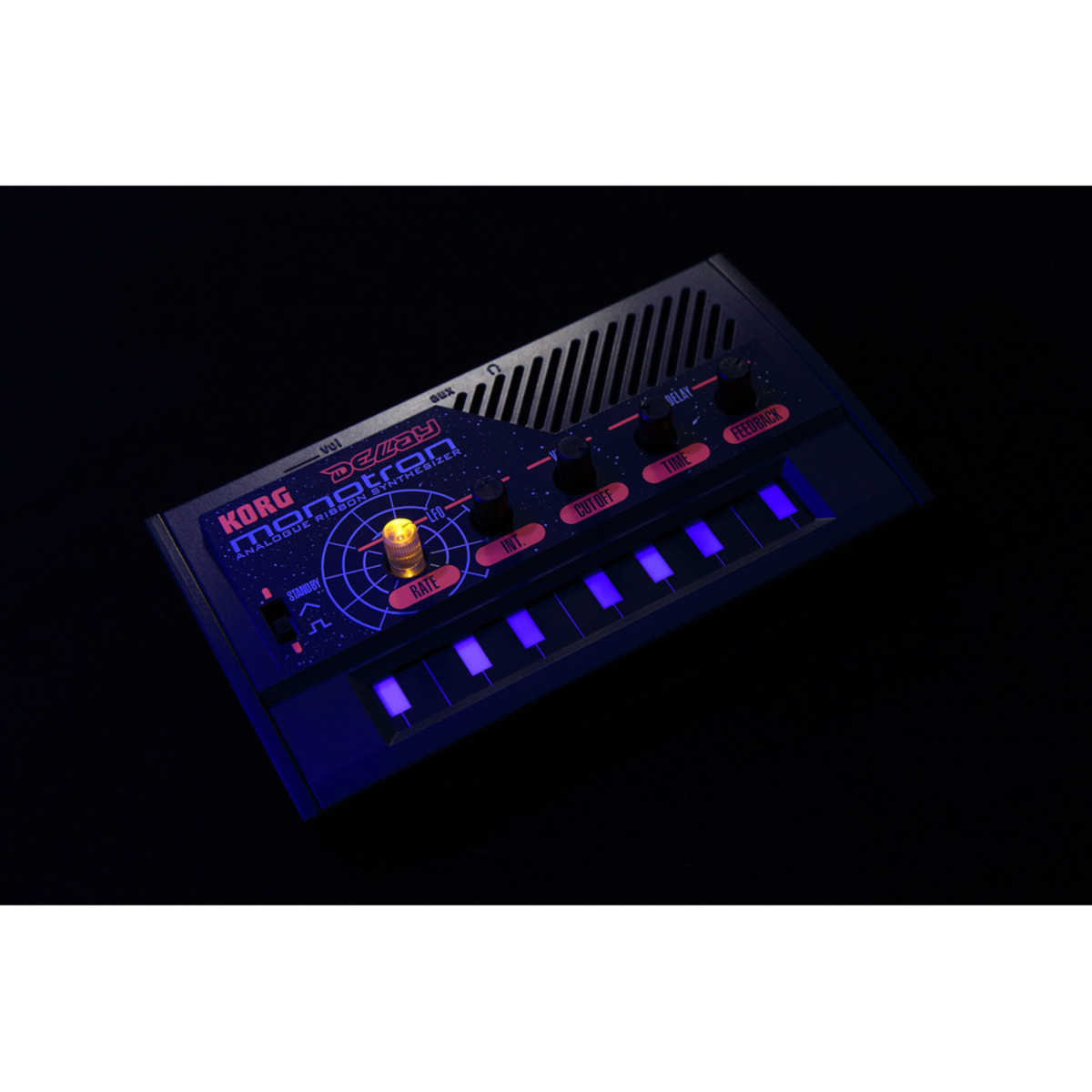 El Korg Monotron Delay es una cinta synthesizer analógica optimizada para efectos de sonido clásicos. El tamaño compacto y el altavoz integrado en miniatura con funcionamiento con batería opcional lo convierten en una pieza ideal para los músicos que viajan en busca de efectos de sintetizador de alta calidad en un paquete portátil. Una salida de auriculares permite la práctica privada y la creación de sonido o la conexión a un amplificador o sistema de megafonía para mejorar sus actuaciones públicas.