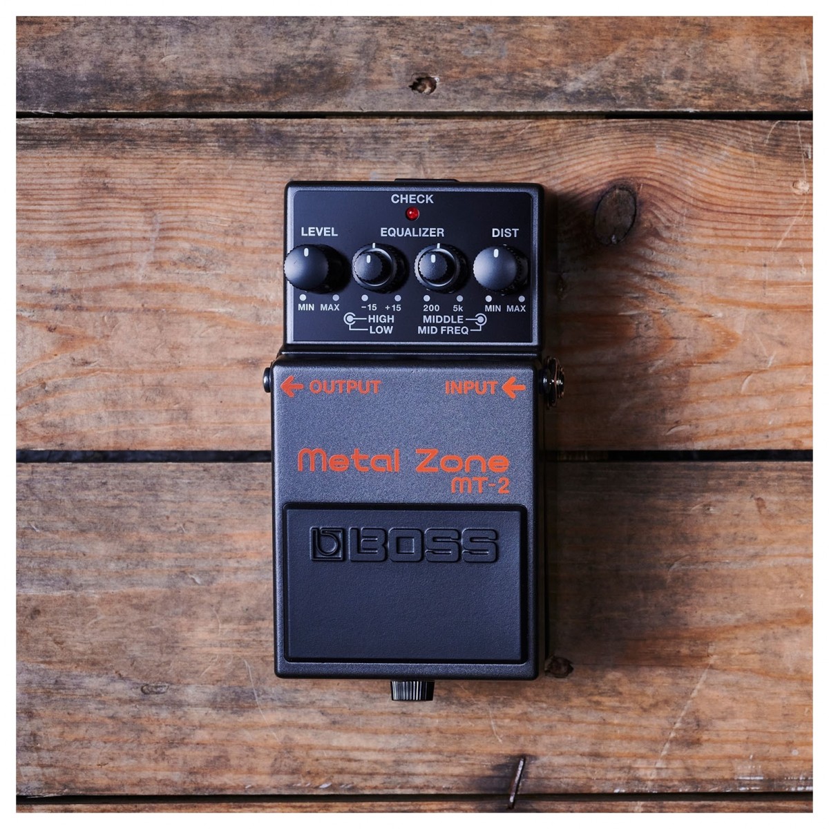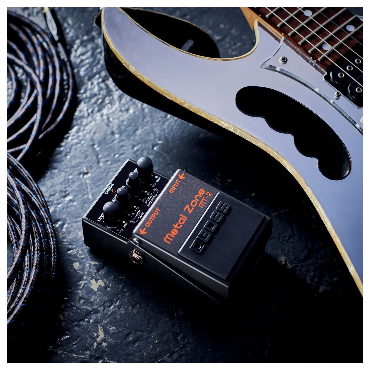 El MT-2 Metal Zone es uno de los pedales más populares de BOSS. Este stompbox proporciona algunos de los tonos de distorsión más over-the-top, loco en el mundo - con enormes medios y bajos y un sonido ultra saturado.