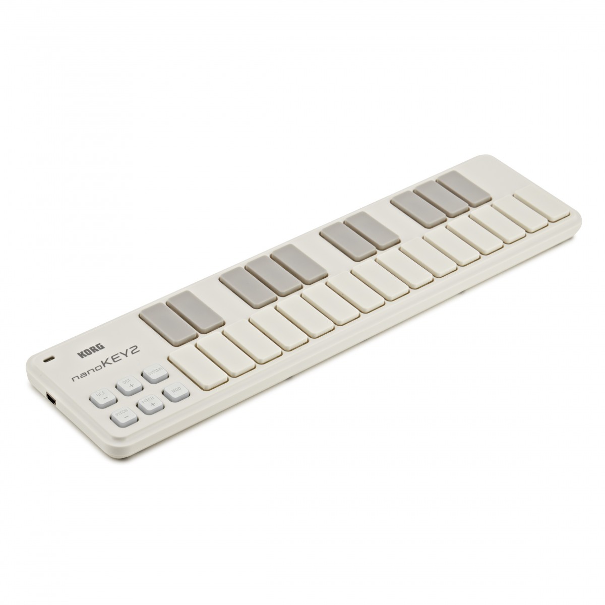 El controlador MIDI USB Korg nanoKEY2, White, es la herramienta perfecta para cualquier músico en movimiento. Cuenta con un teclado sensible a la velocidad de 25 notas de bajo perfil. Esto proporciona una expresión añadida al tocar las notas, registrando las velocidades para mejorar la dinámica.