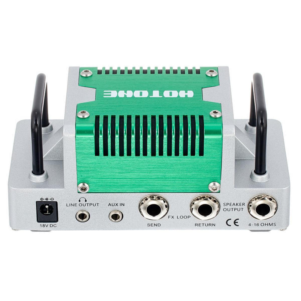 Cabezal de amplificador para guitarra eléctrica Sonido inspirado en el famoso cabezal de amplificador de alta ganancia estilo boutique del Reino Unido 1 canal Potencia: 5 W Controles: graves - medios - agudos - ganancia - volumen Interruptor: encendido / apagado Salidas de altavoz: 4-16 ohmios (jack de 6,3 mm) Bucle de efectos: Serie FX loop Conectores: entrada (jack de 6,3 mm) - salida de línea / auriculares (jack estéreo de 3,5 mm) - entrada AUX (jack estéreo de 3,5 mm) Dimensiones: (An x Pr x Al): 128 x 75 x 60 mm Peso: 440 g 18 V Se incluye fuente de alimentación DC