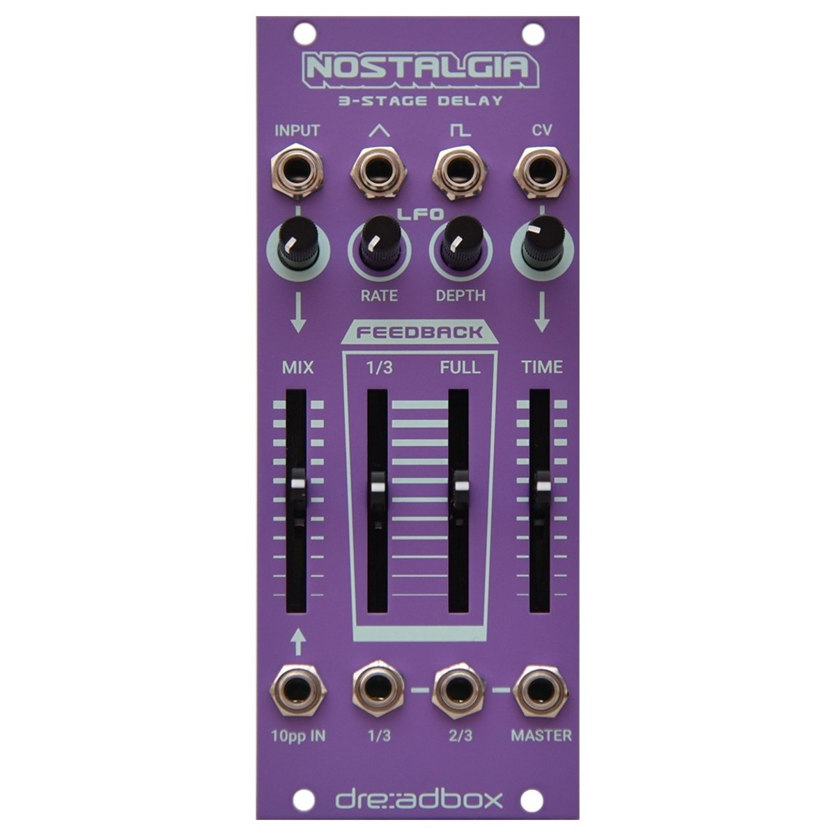 Dreadbox Nostalgia 3 Stage Delay Características principales del Delay de tres etapas basado en el circuito Dreadbox Erebus Una variedad de controles aumenta la inmensa funcionalidad del NostalgiaDelay puede ser controlado por voltaje y tiene un intervalo de 30 ms a un segundo Entradas separadas para niveles modulares y envío de guitarras a través de este dispositivo Dreadbox Nostalgia 3 Stage Delay de un vistazo Entra en una galaxia de retrasos ricos y vibrantes. Dreadbox Nostalgia 3 Stage Delay es un módulo de efectos excelente que puede proporcionar resultados sorprendentes en momentos. Delay es un verdadero elemento básico en el mundo de los efectos y puede llevar tu música modular al siguiente nivel con solo unos pocos cables. El Dreadbox Nostalgia 3 Stage Delay es ideal para una variedad de estilos de música modular, desde el ambiente hasta el acid house. Este módulo de 10HP encaja perfectamente en su sistema y tiene suficiente control de CV para mantener satisfecho incluso al parcheador más ávido. Descripción completaCaracterísticas ampliasAumenta la capacidad cósmica del escenario de efectos con este increíble módulo. Nostalgia es un delay de tres etapas, basado en el circuito Dreadbox Erebus. Consiste en tres circuitos de eco en serie, lo que significa que puede obtener deliciosos retrasos. El tiempo de retardo se puede controlar por voltaje, lo que significa que puede crear una variedad de diferentes tonos sónicos durante las presentaciones. Hay dos controles de retroalimentación diferentes en diferentes etapas. También puede insertar guitarras y otros instrumentos a través de esta unidad, lo que ayuda a difuminar las líneas entre las técnicas de producción musical tradicionales y futuras. Características Retardo híbrido de 3 etapas basado en el circuito Erebus Consta de 3 circuitos de eco en serie Salidas para las etapas 1 y 2 (el nivel de salida es 1/2 más bajo que la señal de entrada) 2 controles de retroalimentación diferentes para diferentes etapas LFO con rango Tiempo de retardo controlado por voltaje con un rango de 30 ms a un segundo Entrada separada para señales de nivel modular Y entrada separada para señales hasta niveles Especificaciones: Profundidad: 35 mm Ancho: 10 CV