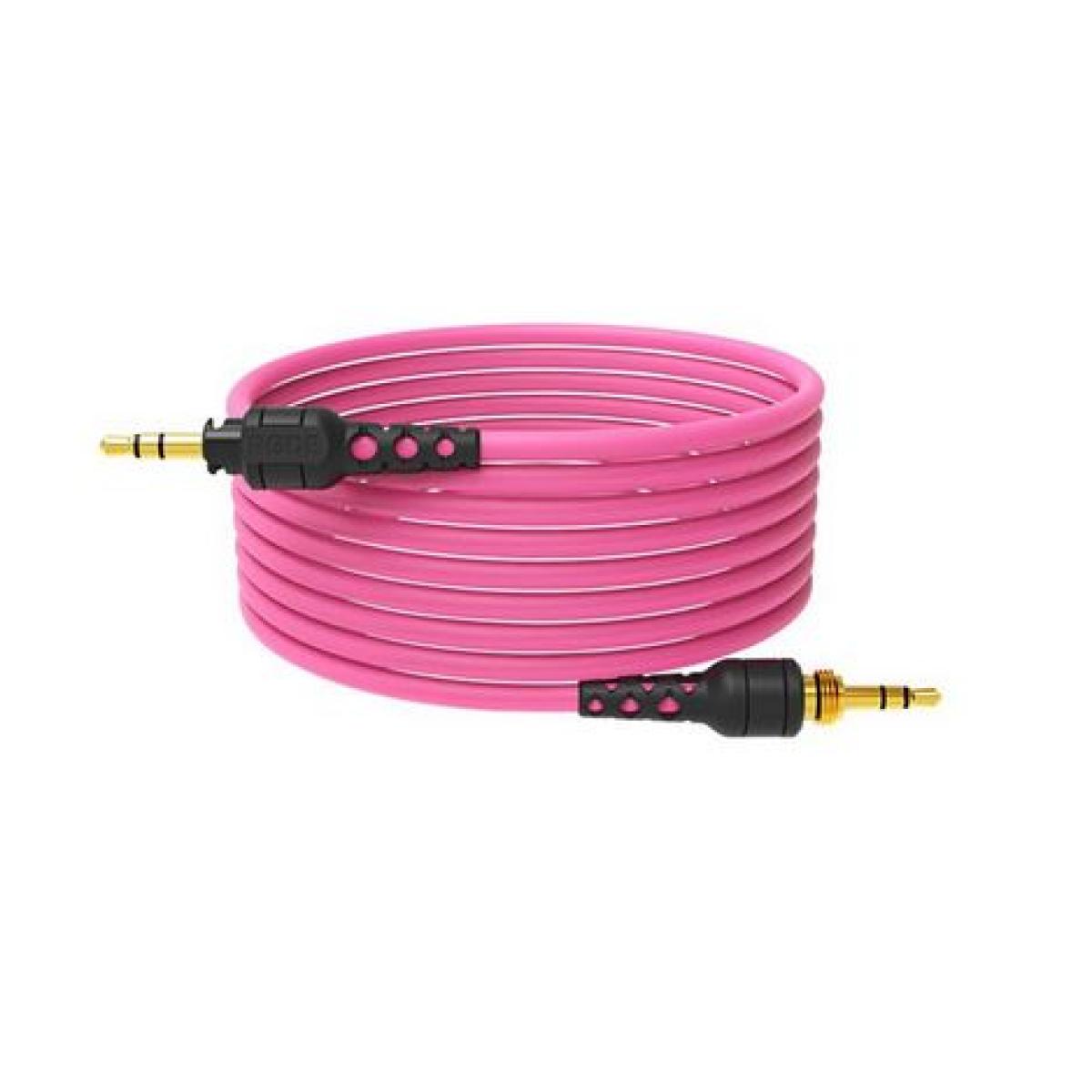 • El Rode NTH-Cable rosa de 7,9' es un cable flexible de un solo lado para usar con los auriculares Rode NTH-100. En un extremo tiene un conector de bloqueo que se acopla de forma segura al auricular izquierdo o derecho, y en el otro extremo hay una clavija TRS de 3,5 mm reforzada con un moldeado de alivio de tensión integrado para un uso fiable y a largo plazo. Los conectores de cada extremo cuentan con un anillo extraíble que puede sustituirse por cualquiera de los anillos de colores incluidos para facilitar la identificación del cable.