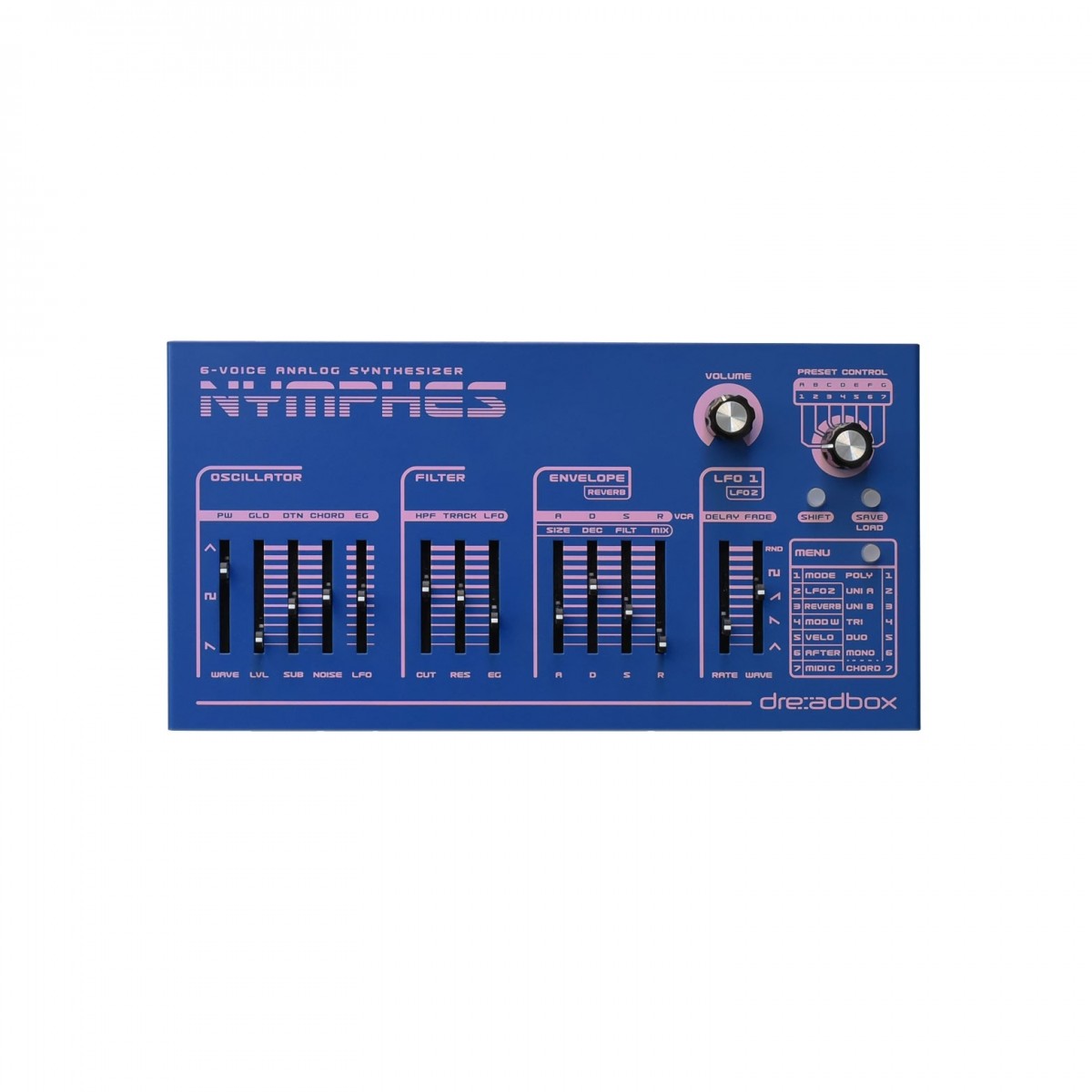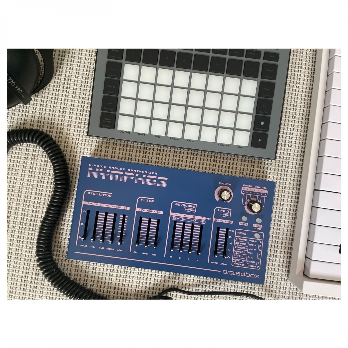 El Dreadbox Nymphes 6-Voice Poly Synth es un sintetizador polifónico totalmente analógico con una amplia gama de tonos para explorar en una unidad compacta y aerodinámica. Una fuerza de la naturaleza, Nymphes sigue la tradición de Dreadbox de productos con nombres de deidades griegas, debido a su poder y gracia, que constituyen la inspiración de cada producto. Nymphes, una diosa de la naturaleza presume de un sonido realmente auténtico con toda la calidez y el carácter que cabe esperar de la construcción totalmente analógica. Si a esto le añadimos un meticuloso diseño de reverb que utiliza la tecnología patentada Dreadbox, podrá situar su sonido en un espacio único que añade expansión y movimiento a sus tonos.