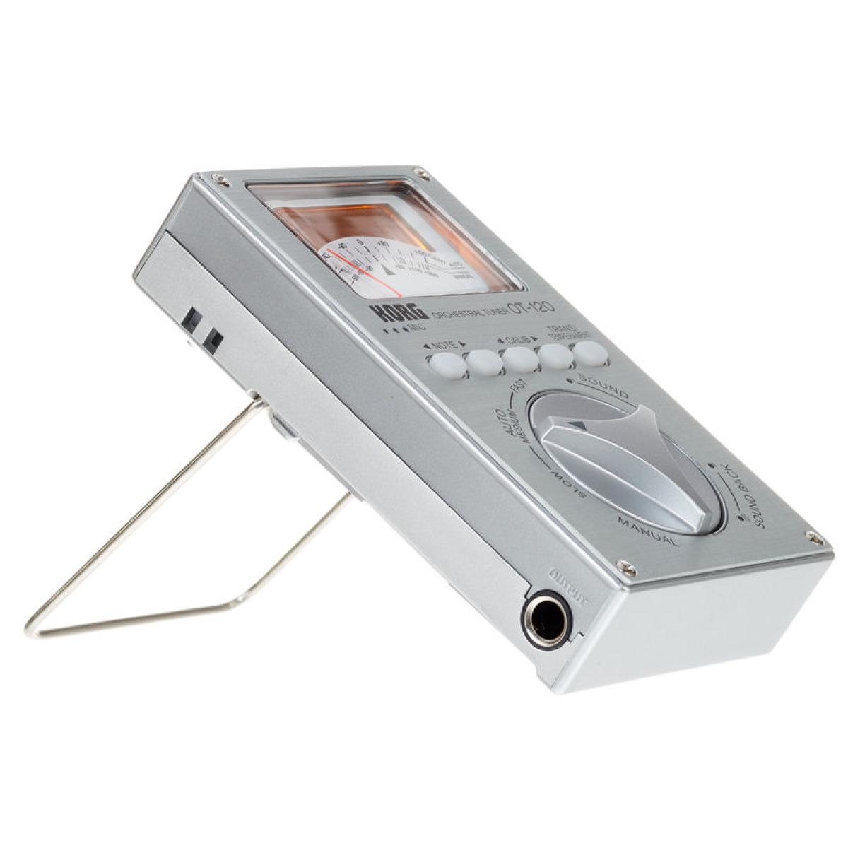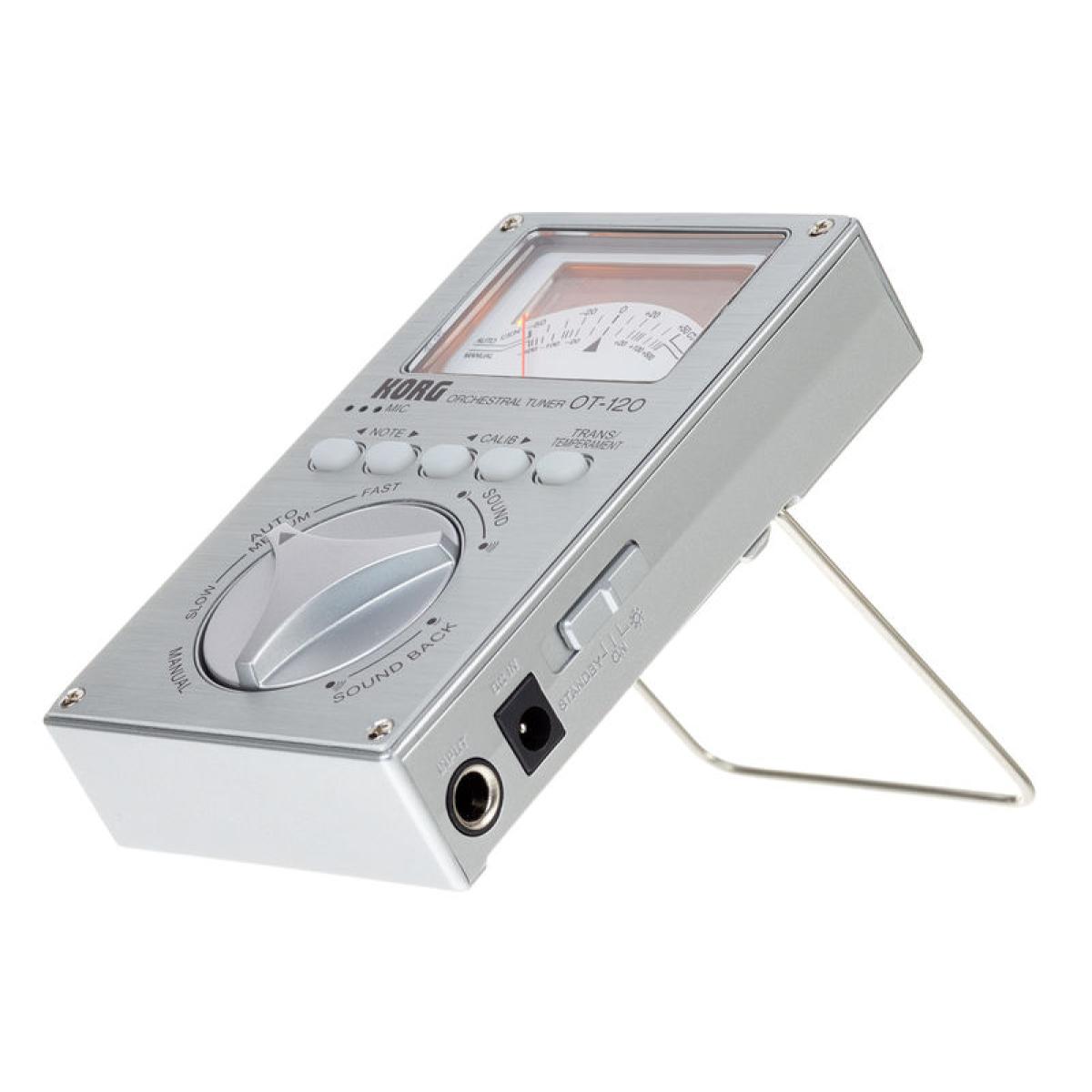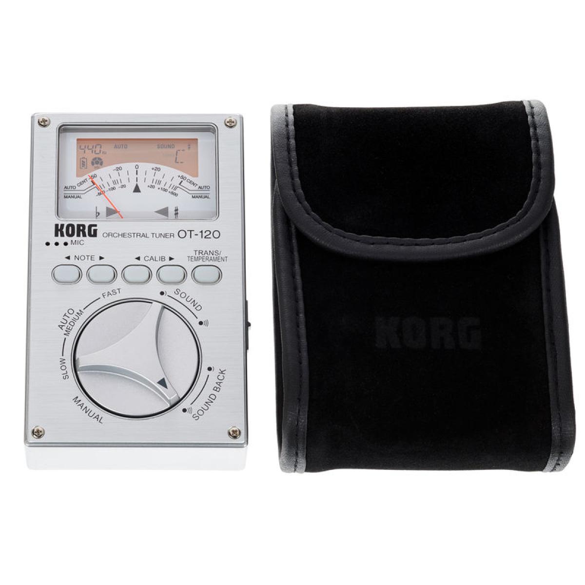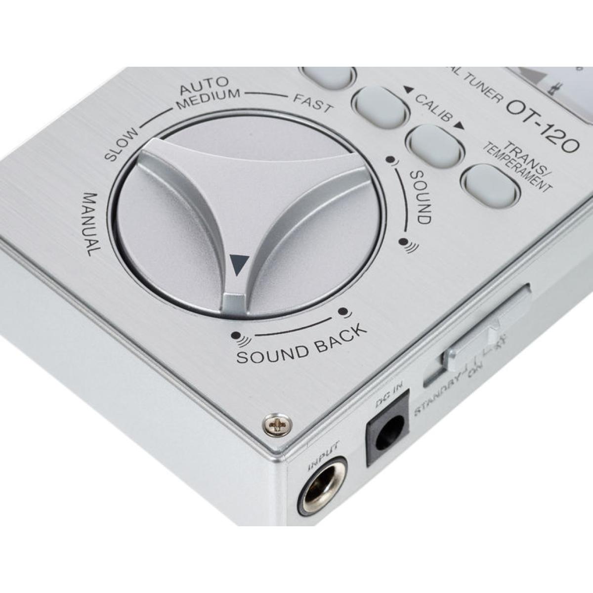 El OT-120 le permite afinar rápidamente cualquier tipo de instrumento de la banda, incluyendo orquesta, viento, cuerda, metal o piano, con su amplia tuning gama que va desde A0 hasta C8. El Korg OT-120 proporciona una amplia gama de calibración para soportar tonos de concierto en un rango de 349-499 Hz (pasos de 1 Hz).