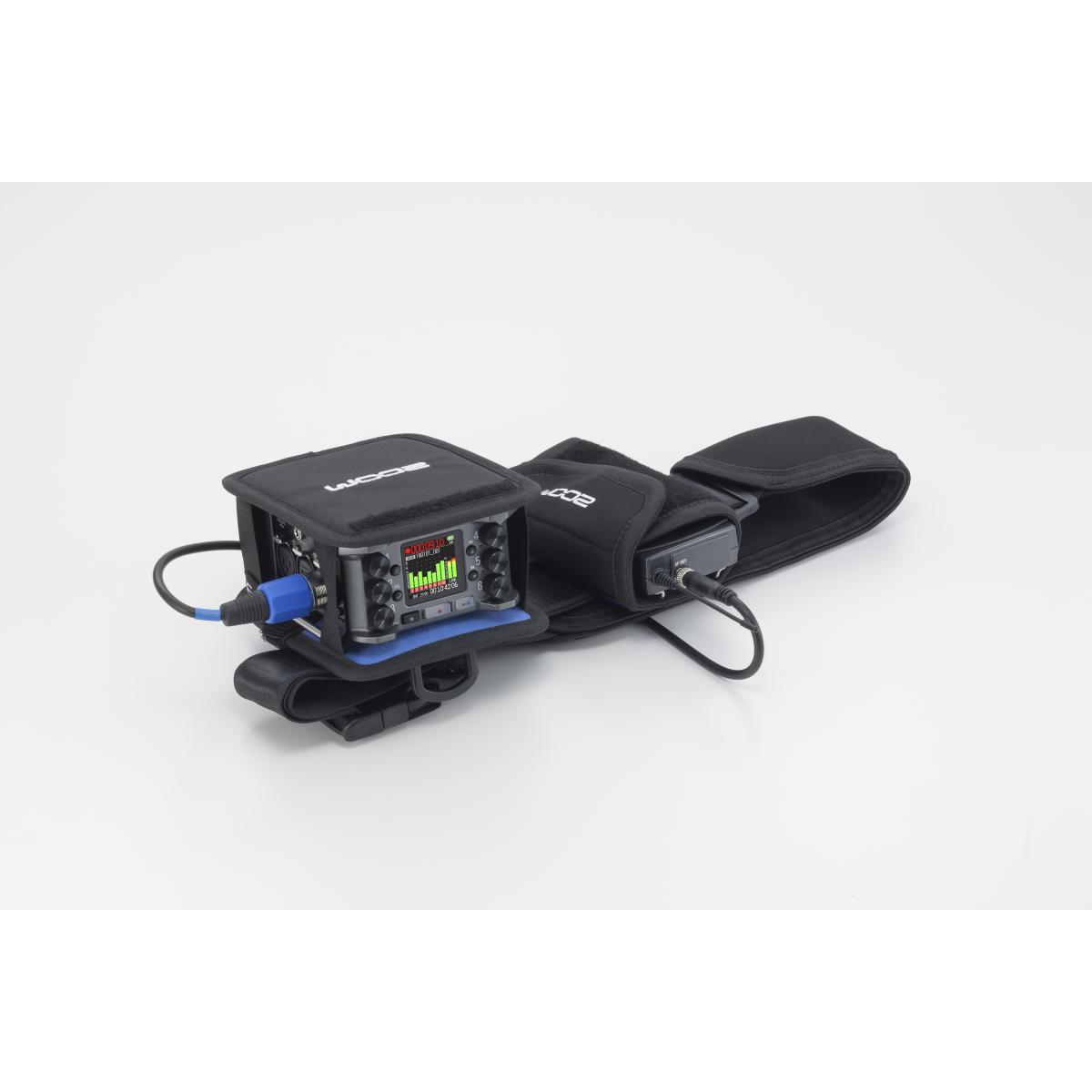 • Consta de dos elementos separados: una bolsa para una grabadora de campo F6 y otra para componentes más pequeños como transmisores de radio, etc.