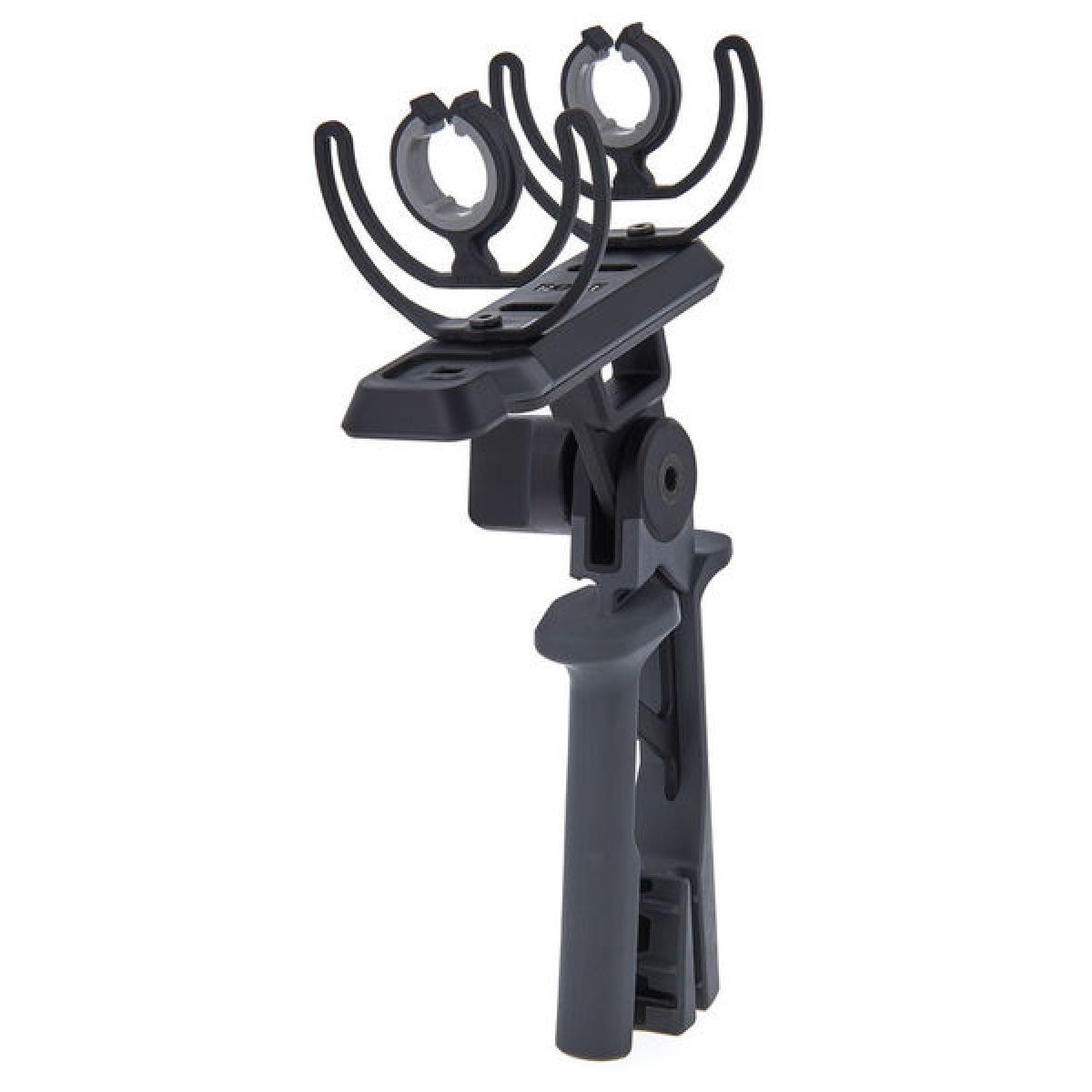 La empuñadura acolchada cuenta con múltiples puntos de montaje de cables con espacio adicional para el conector XLR del cable PG2-R Pro para mayor comodidad. El lateral de la empuñadura cuenta con una tuerca de bloqueo de alta resistencia para una mayor estabilidad y un posicionamiento suave de su micrófono. La rosca de 3/8'' en la base de la empuñadura garantiza la máxima estabilidad y una conexión segura tanto a los soportes de micrófono como a los boompoles.