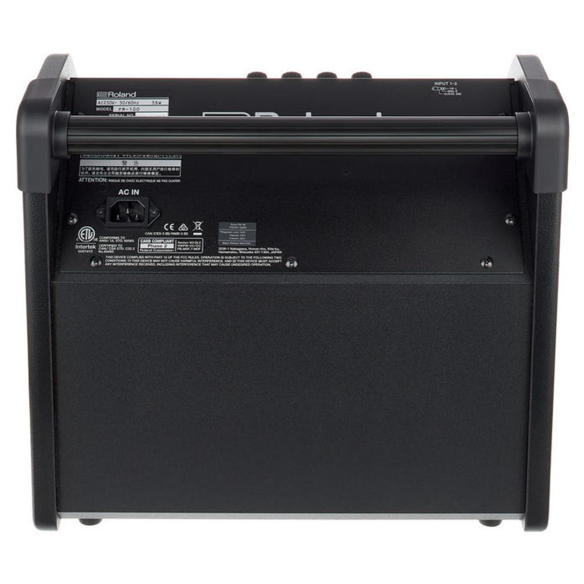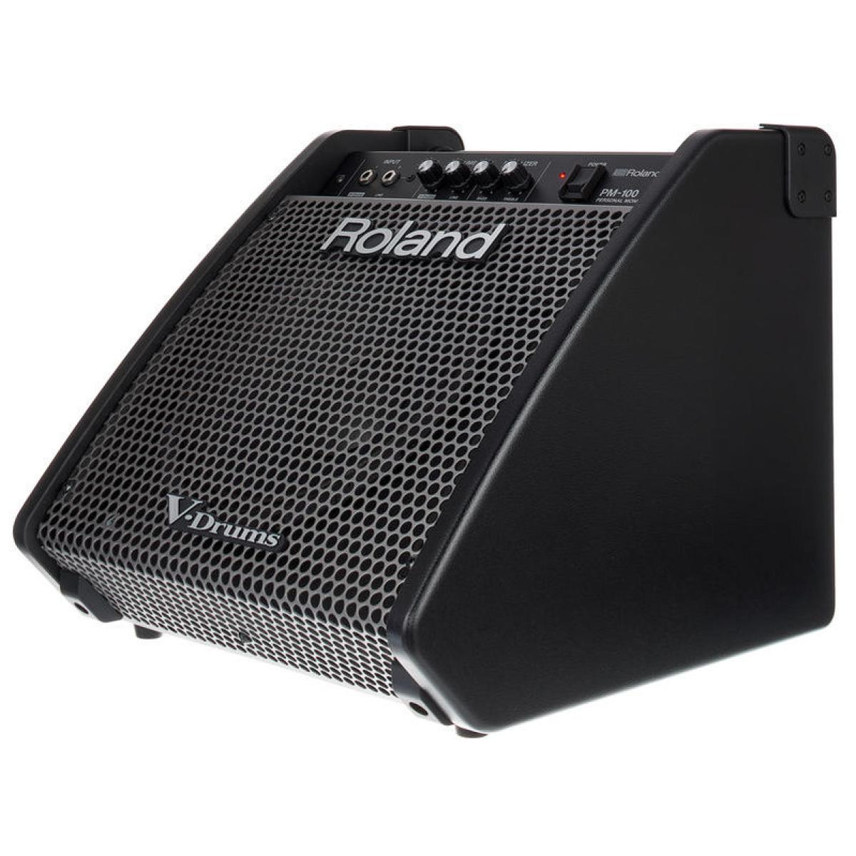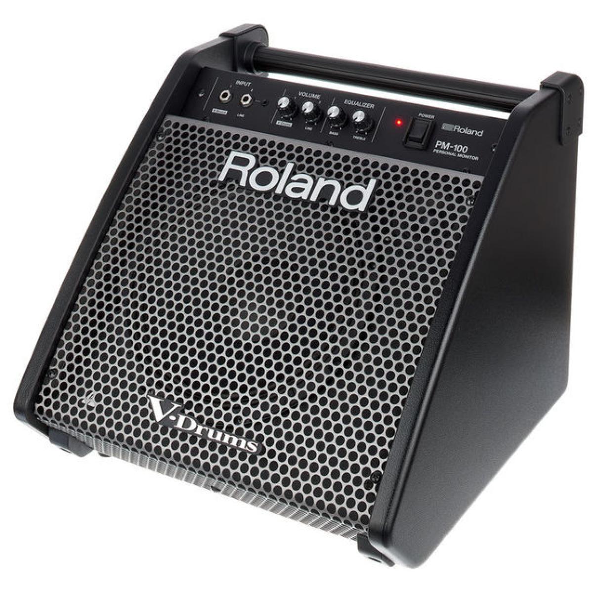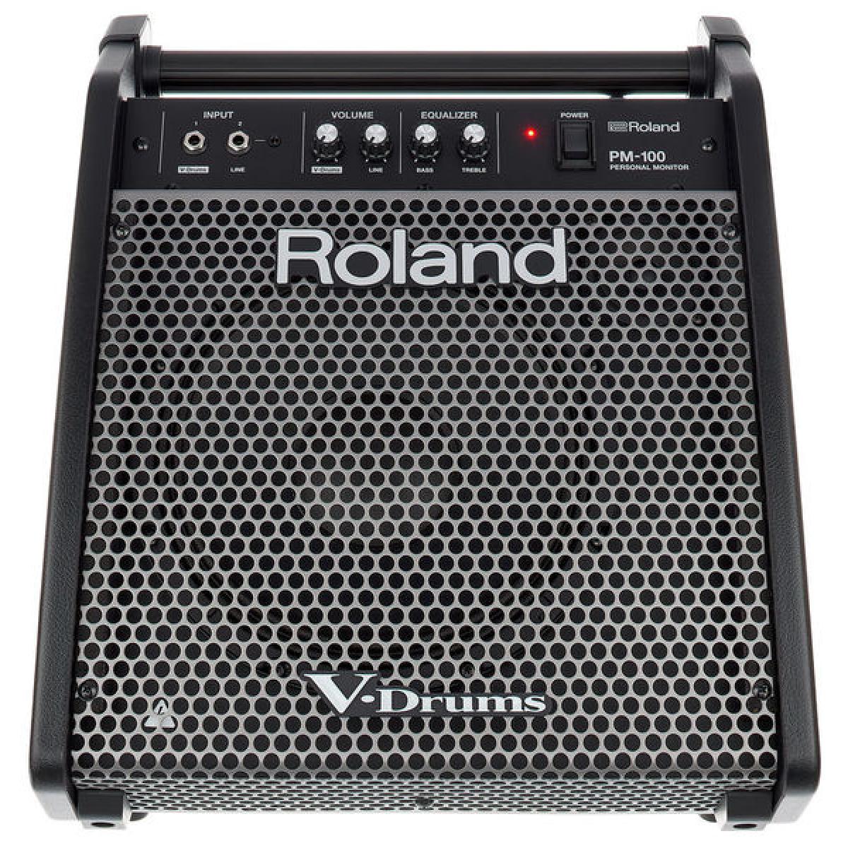 El amplificador Roland PM-100 es un dispositivo especialmente diseñado y optimizado para reproducir el sonido de los V-Drums de Roland. Cuenta con una entrada V-Drums con control de volumen además de una entrada de línea de 1/400 para otras fuentes de audio y para tocar junto con sus canciones favoritas. Cuenta con un chasis resistente y un sistema de altavoces que consiste en un altavoz de 10'' y un amplificador potente de 80 W que combinados reproducen el audio con una proyección y claridad excepcionales. Los controles de ecualizador de dos bandas le permiten ajustar las características tonales para optimizar el sonido y adaptarse a sus preferencias. El Roland PM-100 es un amplificador portátil ideal para los kits electrónicos de Roland V-Drums.