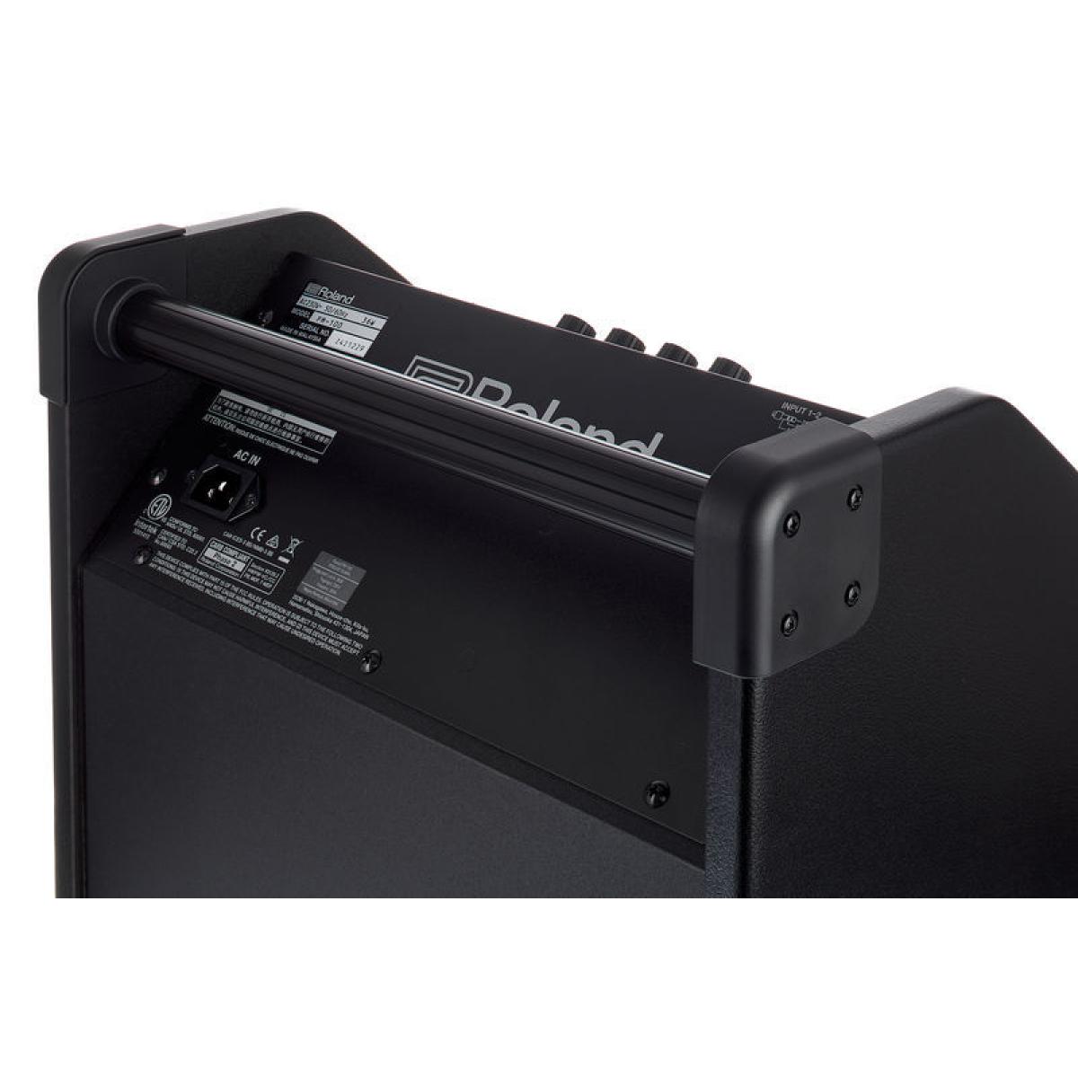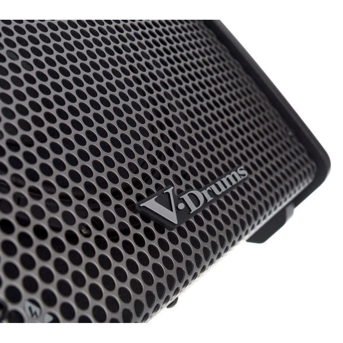 El Roland PM-100 es el complemento ideal para cualquier V-Drums kit. El altavoz de 10" y el tweeter de trompeta de diseño personalizado proyectan un sonido preciso y de gran cuerpo, y la salida de 80W proporciona una gran cantidad de potencia para el juego en casa y el uso en el escenario. La cara delantera está inclinada para que el sonido llegue de forma óptima a los reproductores sentados, y los mangos de la barra de ancho completo garantizan un transporte fácil.