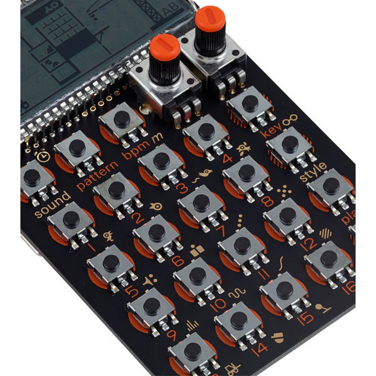 El Teenage Engineering PO-16 Factory Pocket Lead es un sintetizador en miniatura a pilas, ideal para el músico de gira. Este sintetizador de bolsillo ofrece un diseño minimalista con un circuito expuesto con botones de goma muy visuales y cómodos para permitir una apariencia única a un precio accesible. Con secuenciador de 16 pasos, 16 estilos para tocar y 16 efectos adicionales, las posibilidades son infinitas, permitiéndote dejar que tu creatividad fluya.