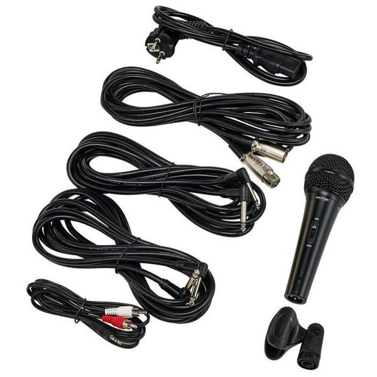 • Bolsa para cables con micrófono y todos los cables necesarios en su interior (situada junto a la mesa de mezclas) ;