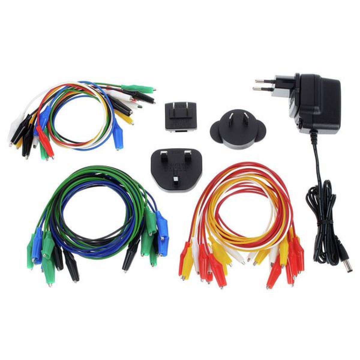 • Incluye bolsa de transporte, 10 cables de conexión (30 cm) con pinzas de cocodrilo, 20 cables de conexión (65 cm) con pinzas de cocodrilo y fuente de alimentación externa (12 V CC)