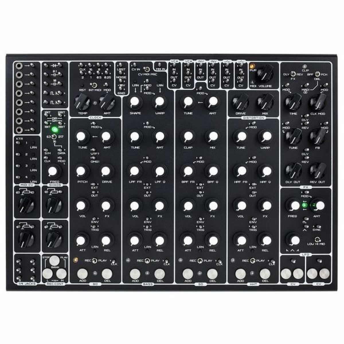 • 4 instrumentos analógicos: bombo, bajo, caja y platillo / hi-hat ;