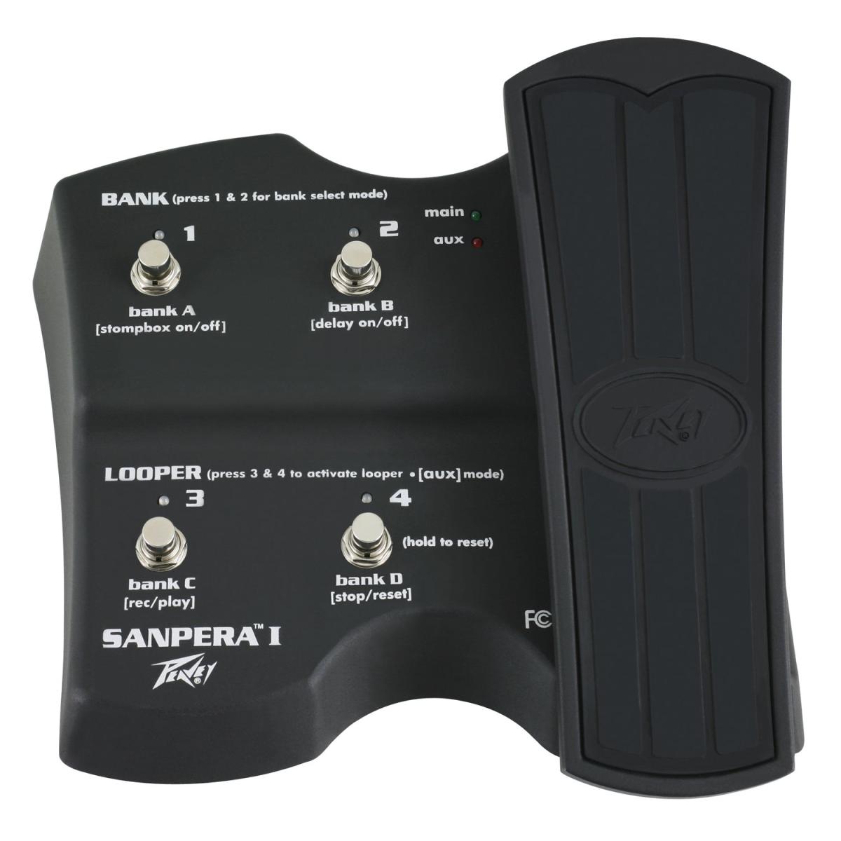 • Sanpera®I incluye un pedal de expresión para ejecutar las funciones de volumen, wah y pitch shifter, además de cuatro botones selectores de funciones momentáneas. ;