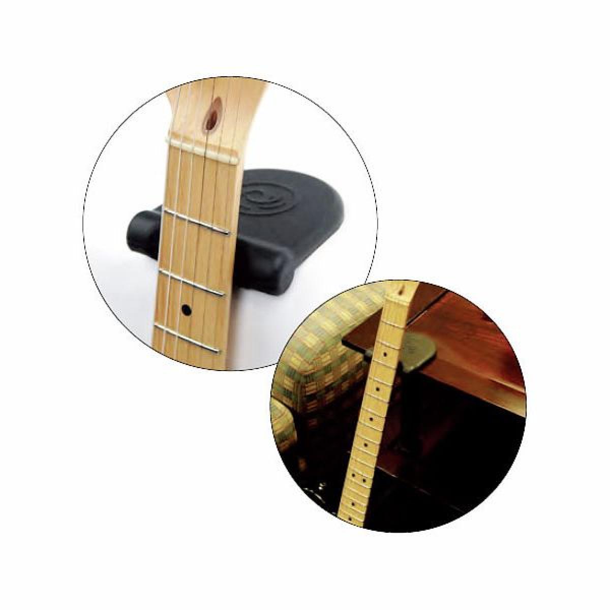 • El soporte para guitarra convierte cualquier superficie plana en un soporte para guitarra. El soporte para guitarra se coloca cerca de una superficie adecuada y la guitarra se coloca contra el soporte. El material de la superficie del soporte de guitarra evita prácticamente cualquier deslizamiento. La solución perfecta para situaciones en las que no se dispone de soporte para la guitarra. ;