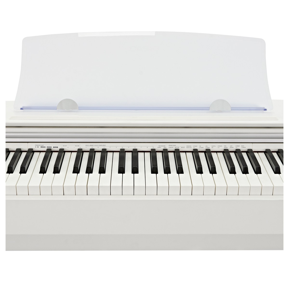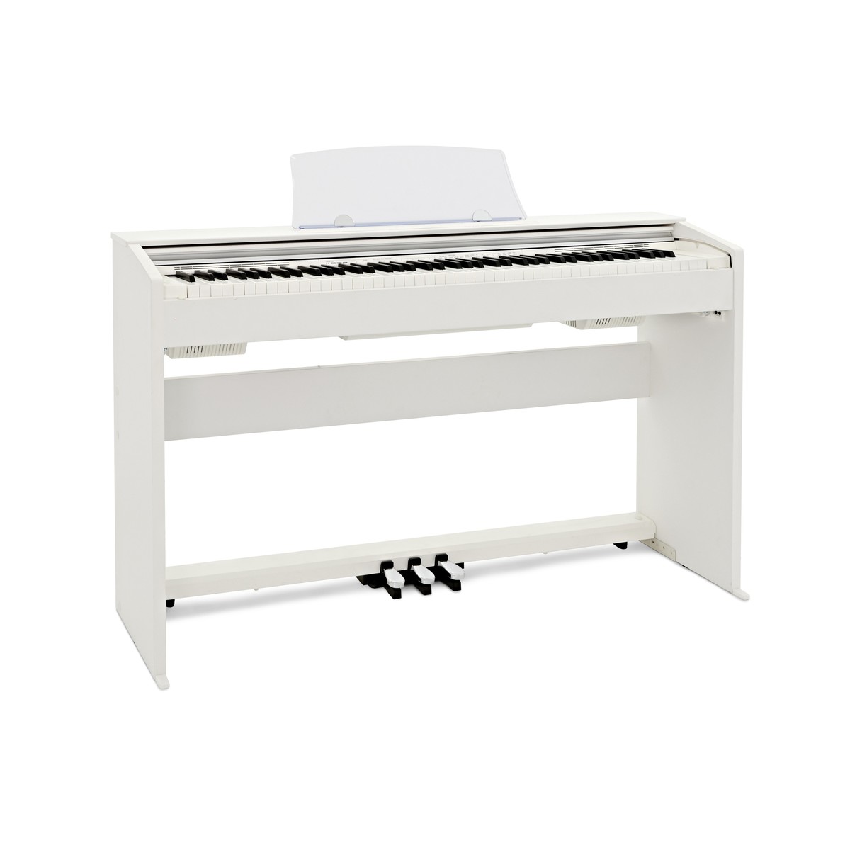 El piano digital Casio Privia PX-770 proporciona una gama de sonidos auténticos e ideales para estudiantes. Dispone de 88 teclas con acción de macillo con la tecnología Air Morphing para producir tonos armónicos y dinámicos. El teclado consta de una respuesta similar a la de un piano acústico, mientras que la tecnología Tri-Sensor registra los matices más sutiles y proporciona una respuesta precisa. Este modelo incorpora 60 canciones con las que puedes tocar y espacio para 10 canciones más que quieras añadir. Ideal para estudiantes, la función Concert Play te ayudará a aprender aislando segmentos de diferentes pistas para que puedas volver a escuchar y tocar cuantas veces necesites. De tamaño compacto, el Caso Privia incorpora una pedalera y un soporte elegante.