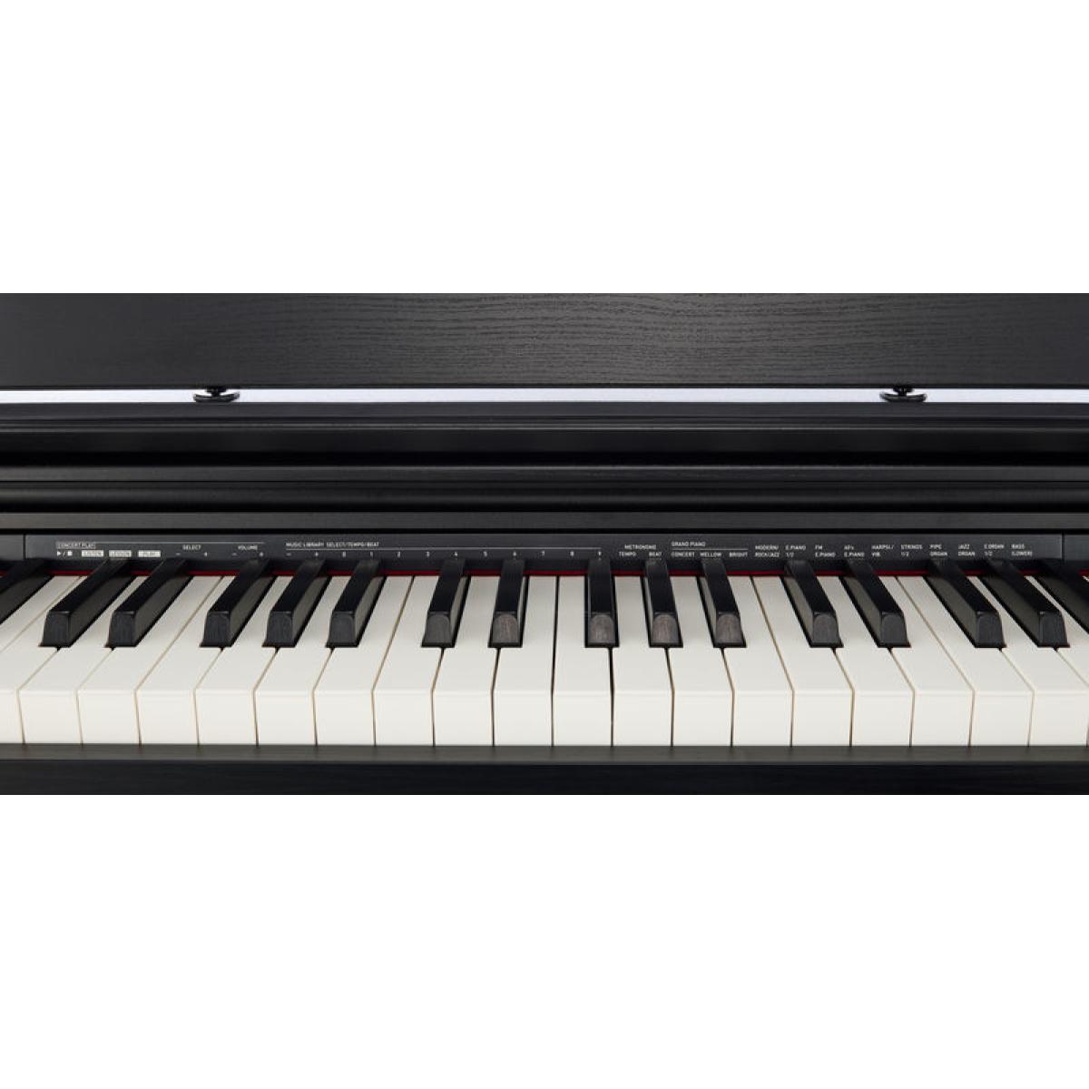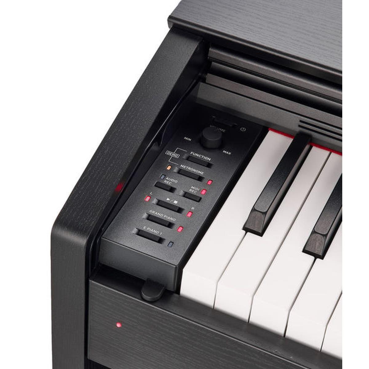 Piano digital 88 teclas con acción de martillo escalado II (Tri-Sensor) teclado sintético de ébano / marfil 19 Sonidos Morphing multidimensional Generación de sonido AiR Ecualizador de sincronización de volumen y modo de auriculares 256 Polifonía de voz Grabación / reproducción de audio Función de división y capa DSPChorusBrilliance Juego de conciertoRespuesta de martilloDamper-resonanceSimulación de cuerdas y resonancia interna pistasTranspositorMetrónomoModo Duet2 Salidas de auricularesCubierta de piano variable3 PedalesUSB a hostUSB a dispositivoAltavoces: 20 W / 20 WDimensiones incluido el soporte (W x D x H): 1393 x 299 x 801 mmPeso: 34,3 kgColor: Negro mateIncl. soporte para música y fuente de alimentación AD-E24250LW