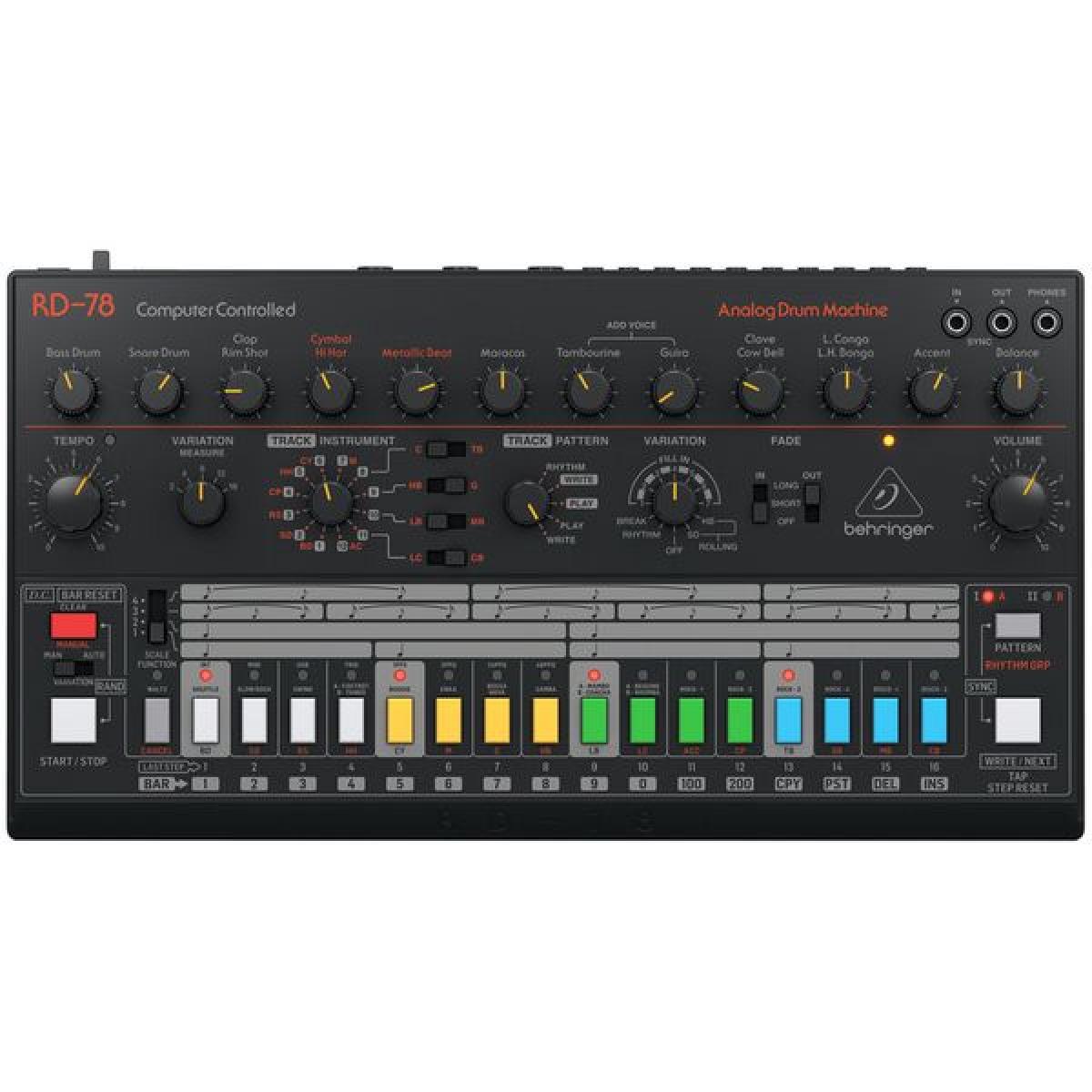 • Caja de ritmos analógica clásica con 15 sonidos de percusión, 34 patrones rítmicos icónicos y secuenciador de 16 pasos ;