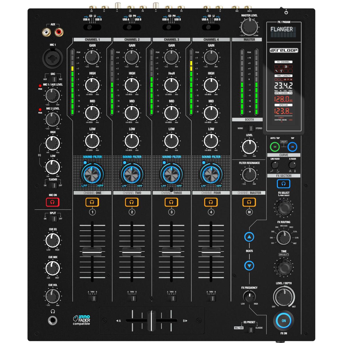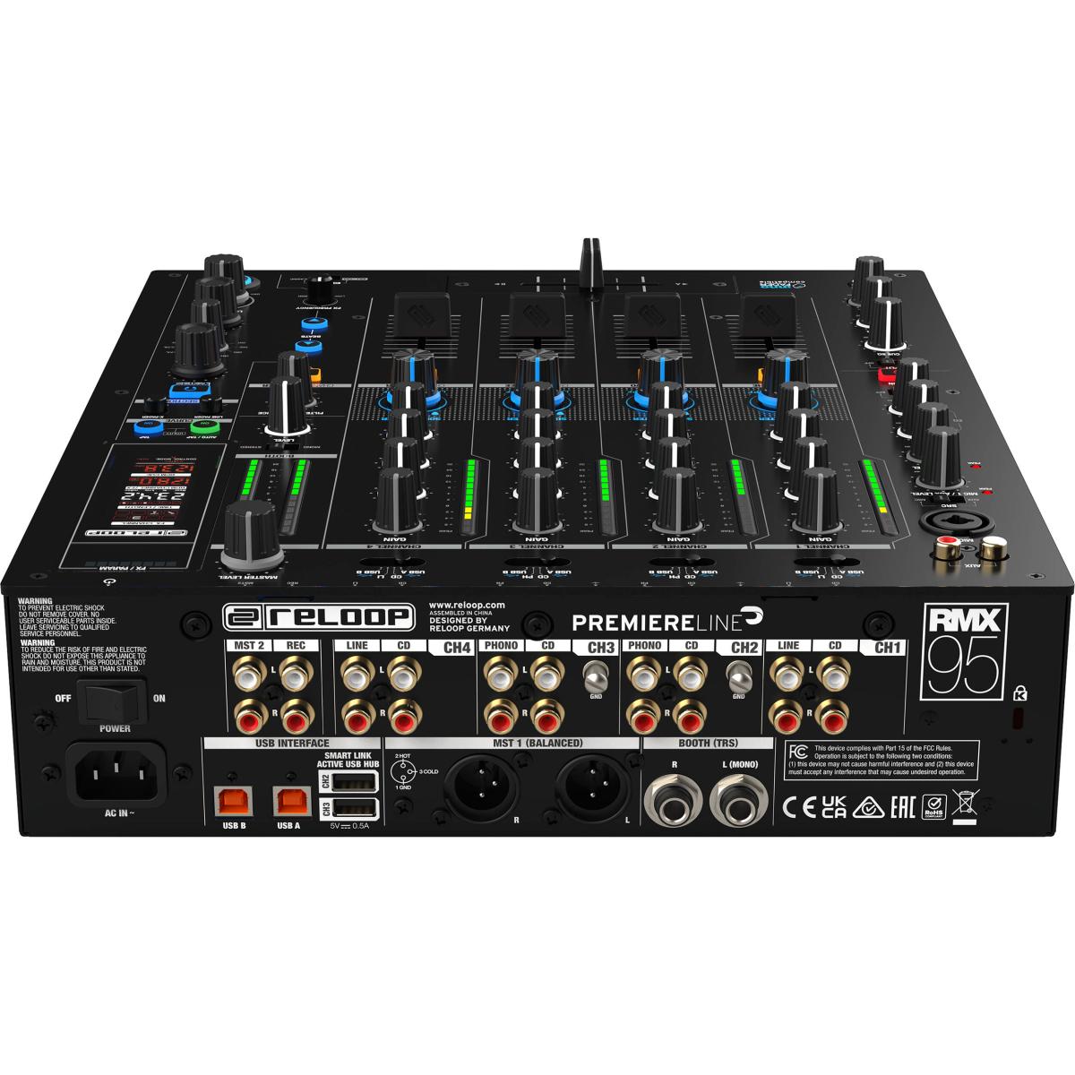 Los DJ profesionales y los aficionados que buscan una mezcladora de DJ profesional rentable quedarán impresionados con la RMX-95 de Reloop, una mezcladora de DJ de 4+1 canales que ofrece una disposición y un flujo de trabajo estándar de la industria con una interfaz familiar y fácil de usar. La disposición incluye cuatro canales de entrada estéreo con ganancia, ecualizador de 3 bandas, filtros de sonido (HPF/LPF) y faders de 60 mm. El crossfader reemplazable es compatible con el RMX Innofader.