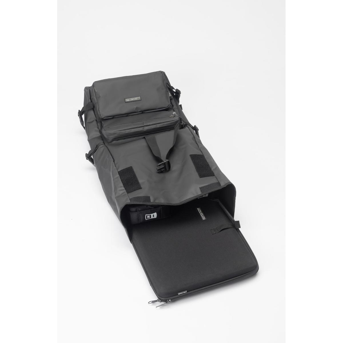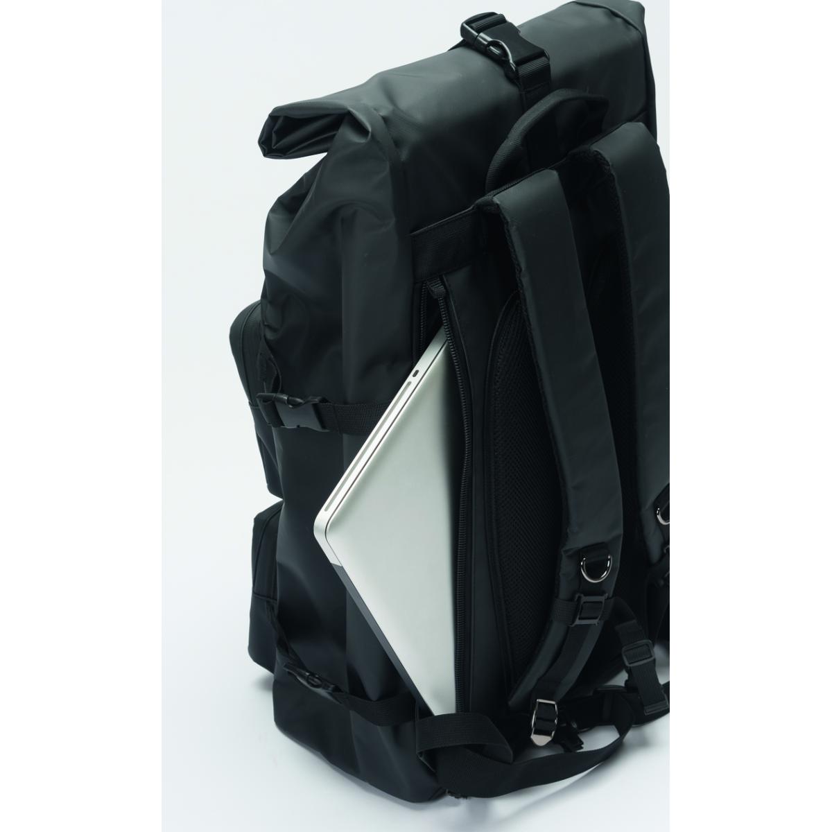 La bolsa en sí es muy resistente también. Cuenta con una lona de PVC 100 por ciento impermeable, para ofrecer una protección total. Y la flexibilidad del material le permite encajar todo tipo de materiales en su interior. Además, cuenta con dos bolsillos para accesorios y un bolsillo lateral con cremallera para ordenador portátil.