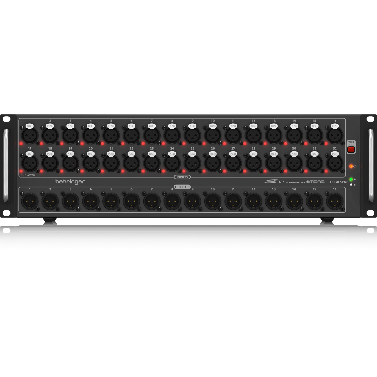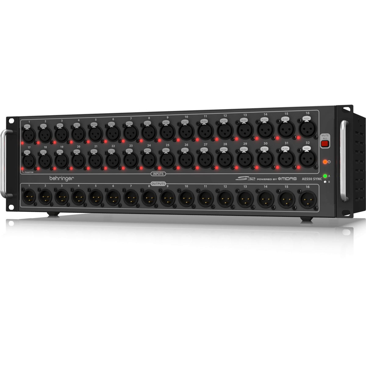 Como puede ver, la S32 es una solución de caja de escenario digital 32 x 16 extremadamente versátil con preamplificadores de micrófono controlables remotamente diseñados por MIDAS, conectividad AES50 de KLARK TEKNIK y una gran cantidad de otras características de nivel profesional, ¡todo ello a un precio que cualquiera puede permitirse! Construido lo suficientemente resistente para soportar los rigores de la carretera, el S32 sólo ocupa tres espacios de rack y se conecta a FOH con un único y económico cable Cat 5e, como el KLARK TEKNIK NCAT5E-50M. Ahora usted puede tener el eslabón perdido entre el escenario y FOH a una fracción del costo de los sistemas de la competencia - y lo respaldamos con un programa de garantía integral.