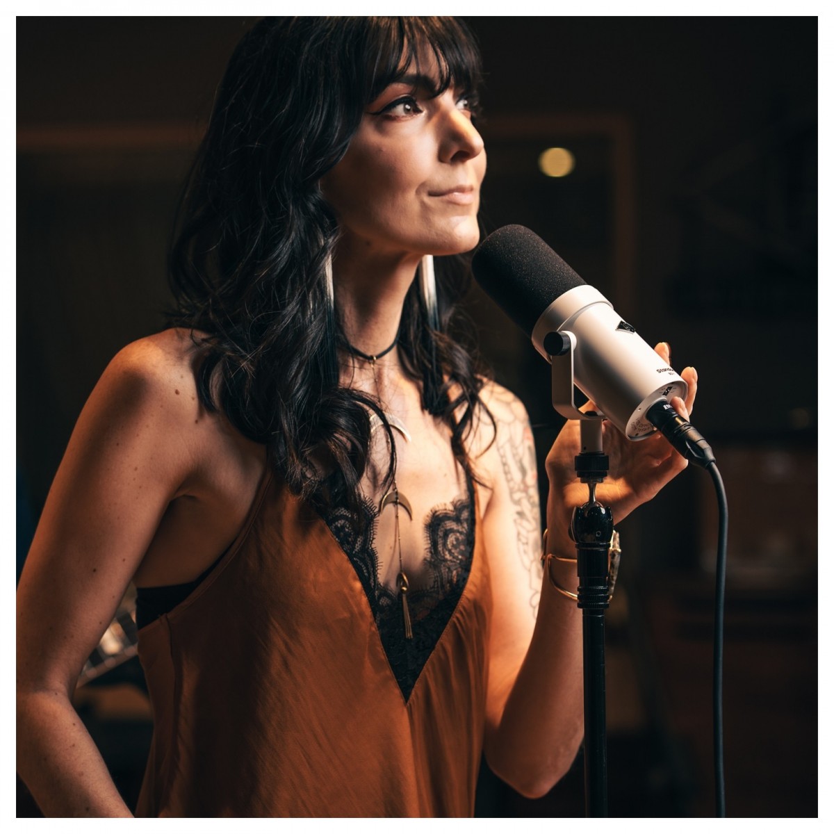 cantando directamente en el micrófono sin necesidad de ningún filtro