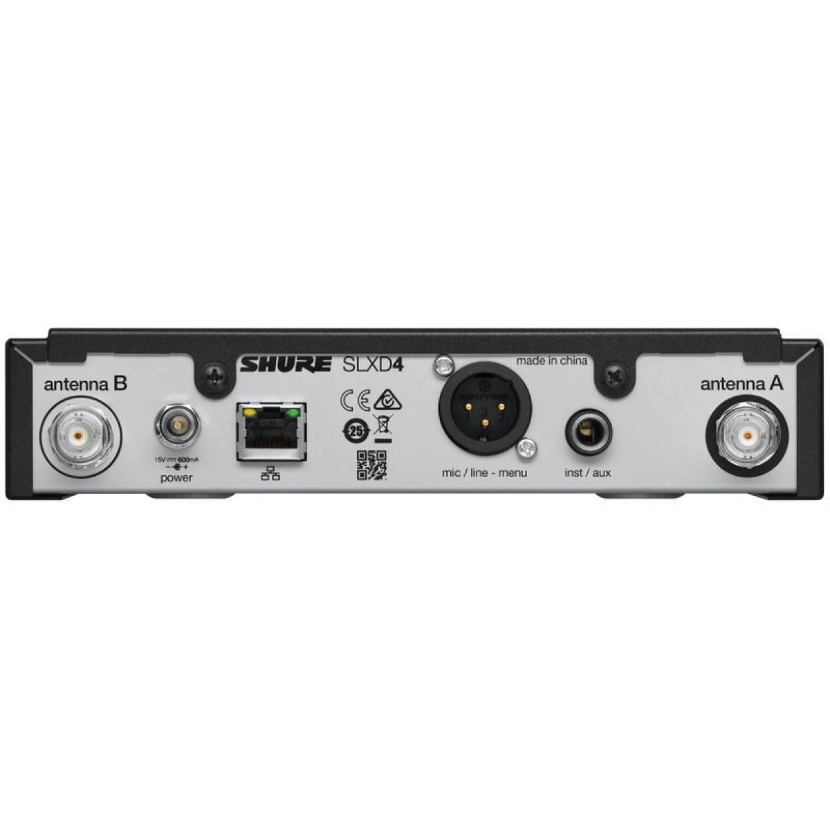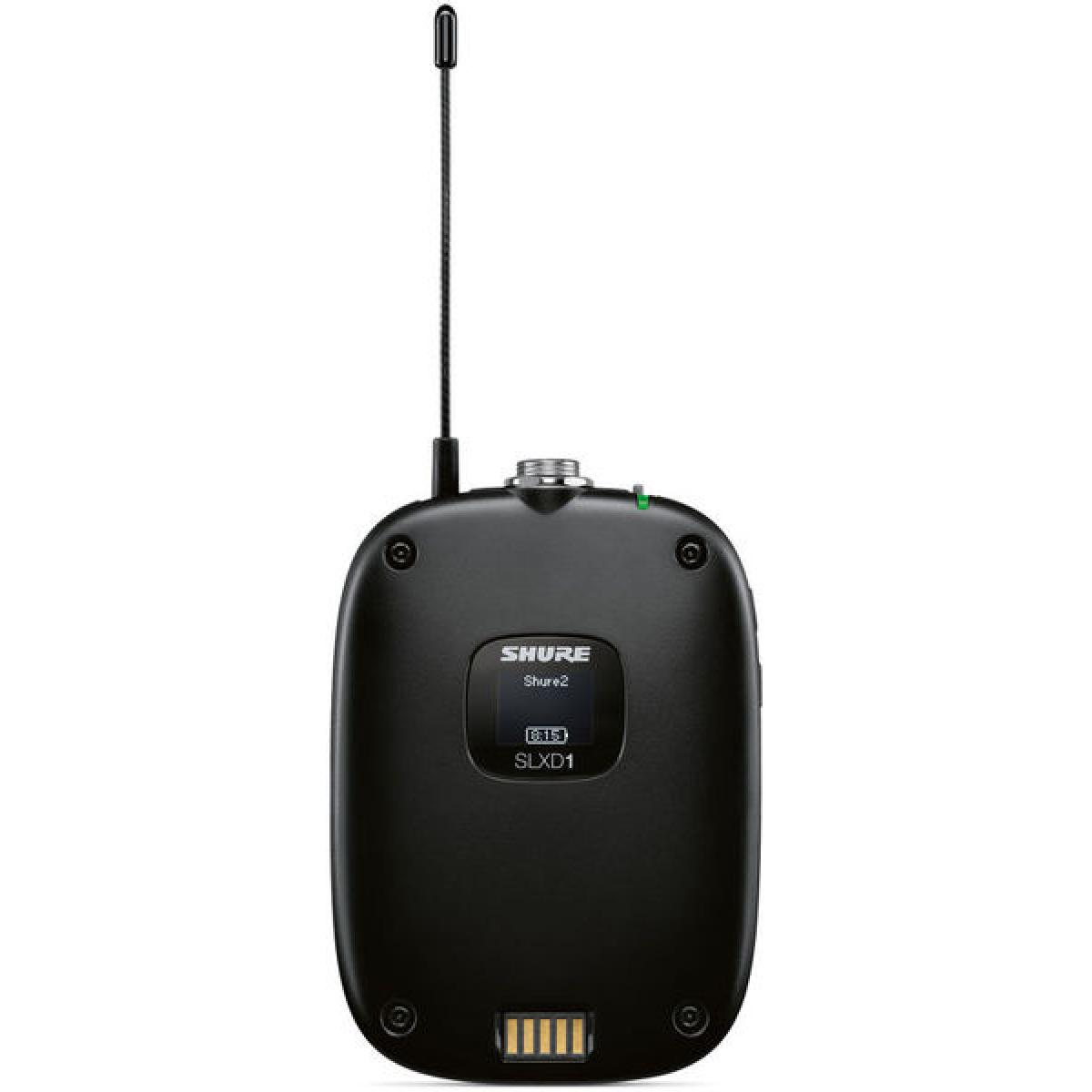 Shure SLXD14E / SM35Shure SLXD14E / SM35 - sistema inalámbrico digital UHF con micrófono de diadema SM35; cardioide; respuesta de frecuencia: 45 - 20.000 Hz; 153 dB SPL máx; negro; rango de frecuencia 518-562 MHz; transmisión de audio de 24 bits / 48 kHz; Rango dinámico de 120 dB; ancho de banda de conmutación de 44 MHz; potencia de transmisión conmutable 1 mW / 10 mW; 12 canales compatibles por banda de 8 MHz; frecuencia de infrarrojos y transmisión de configuración; XLR / jack out; bodypack con conector TA4M; el transmisor funciona con 2x 1,5V Baterías AA o batería recargable de iones de litio SB903 opcional; incl. Montajes en rack de 19 '';