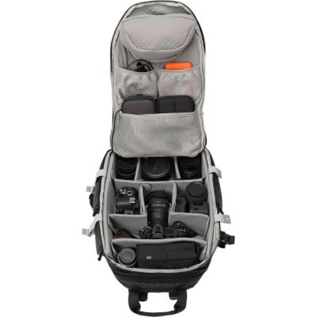 - Numerosos bolsillos interiores, compartimentos y bolsillos con cremallera para equipos más pequeños