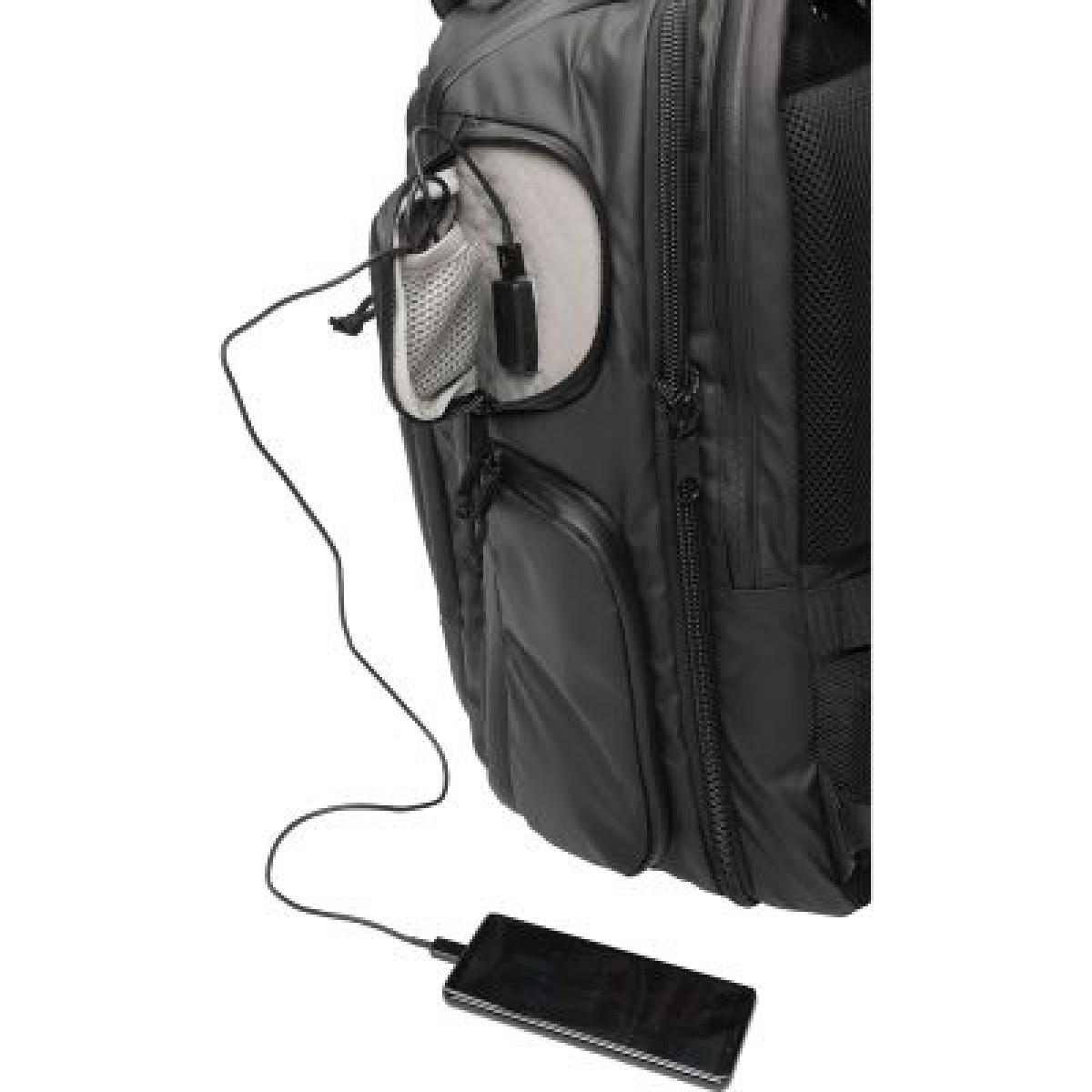 - Bolsillo lateral con puerto de carga USB (batería externa no incluida)