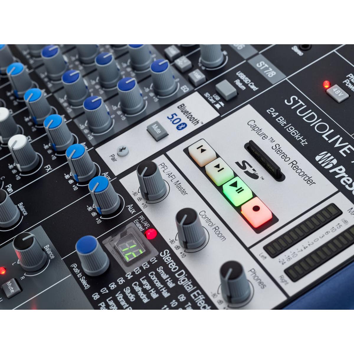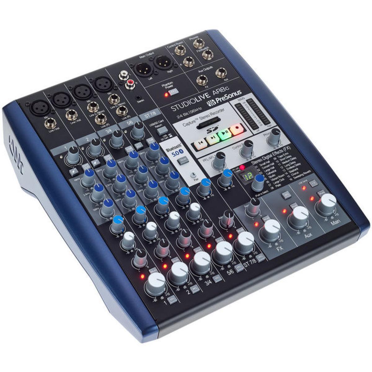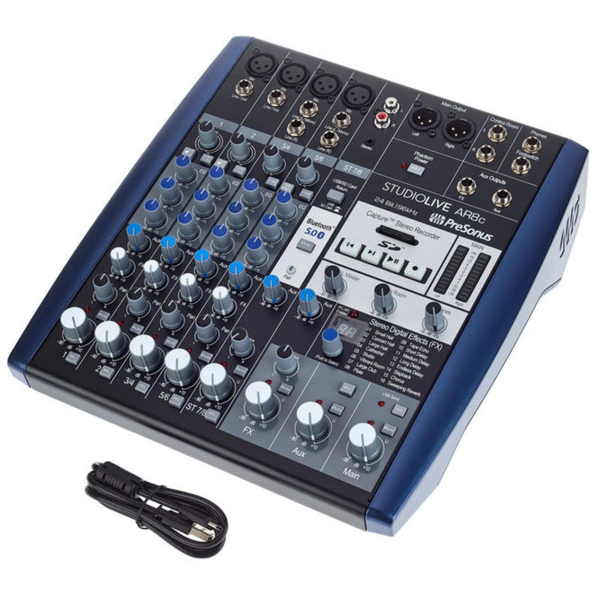 El mezclador también cuenta con entradas de micrófono y de línea, lo que le permite grabar directamente desde el mezclador a partir de una serie de equipos. El StudioLive AR8c también cuenta con alimentación fantasma de 48V, lo que le permite grabar dispositivos compatibles como micrófonos de condensador. Además, el mezclador cuenta con controles rotativos para Solo Master, Sala de Control, Teléfonos, FX, Monitoreo, Principal y más.