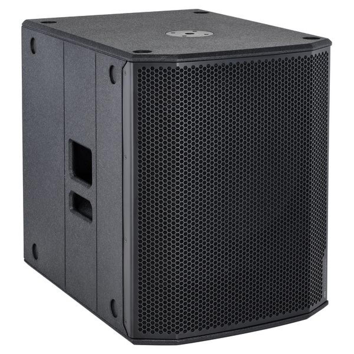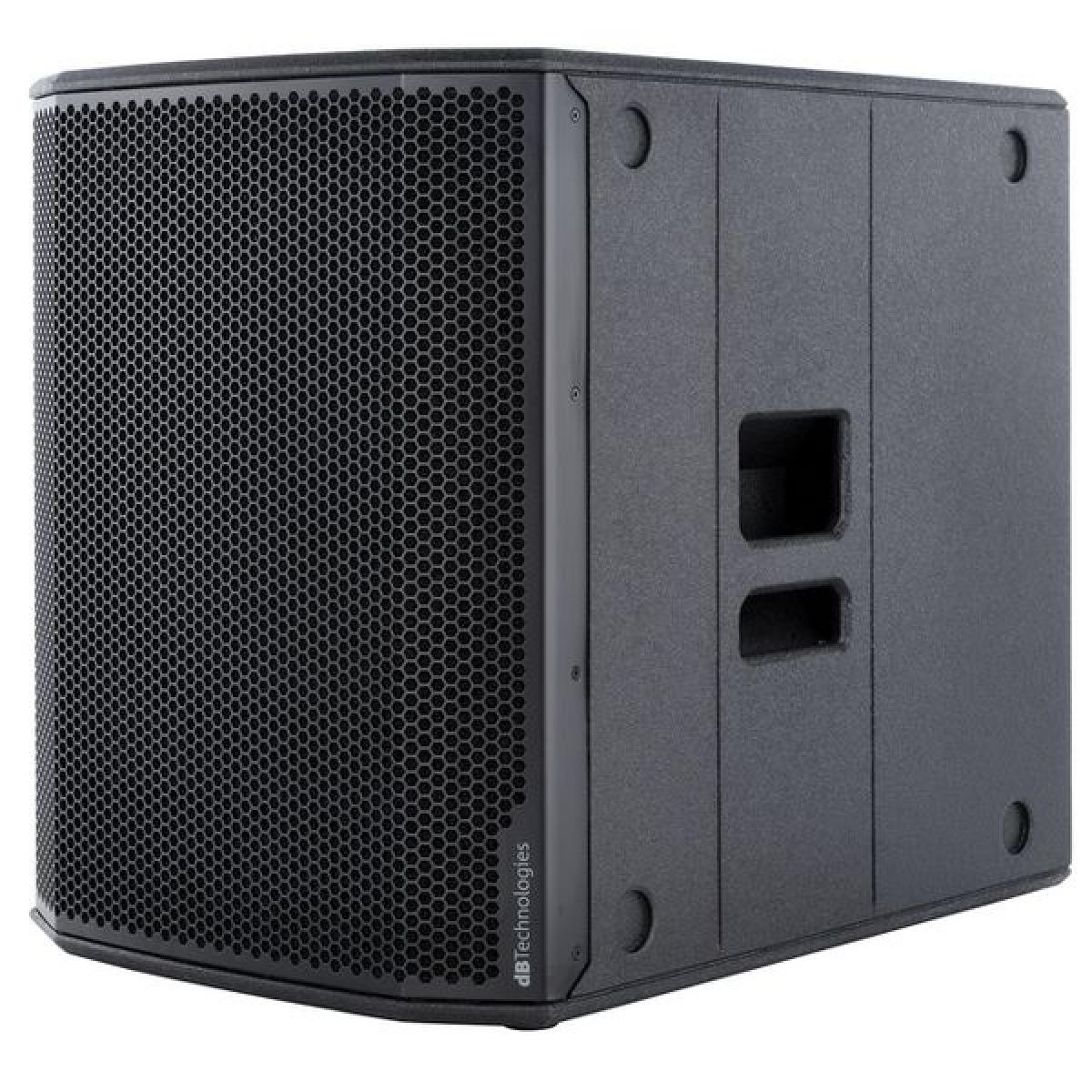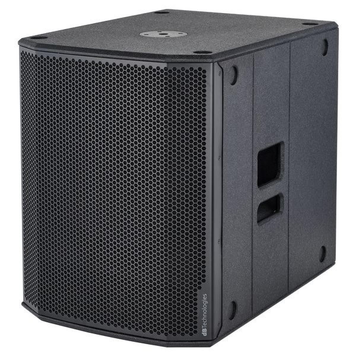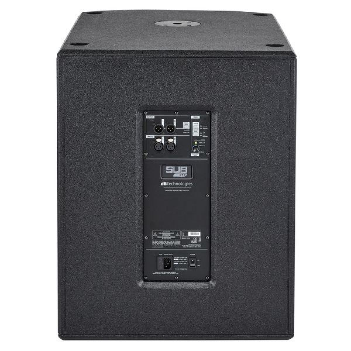 Subwoofer activo profesional dB Technologies SUB 618 de 18" con amplificación Clase D, graves profundos y construcción robusta para sistemas PA de medio y gran formato.