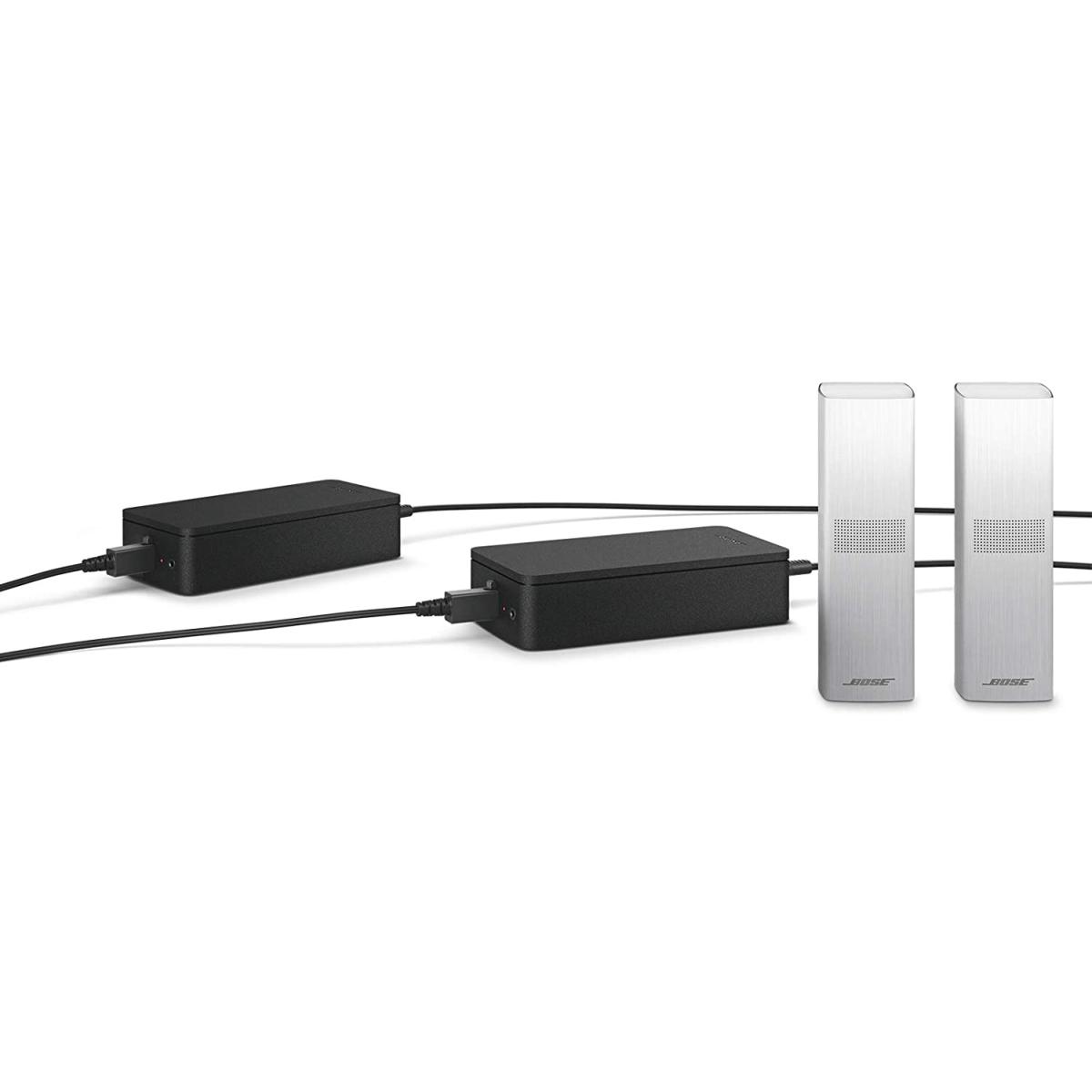 Los altavoces Bose Surround 700 están diseñados para su uso en la misma habitación que la barra de sonido Bose 700, la barra de sonido Bose 500 o la barra de sonido SoundTouch 300, y tienen un alcance de unos 29.5 ft. Los altavoces Bose Surround 700 se conectan de forma inalámbrica a la barra de sonido Bose 700, la barra de sonido Bose 500 y la barra de sonido SoundTouch 300, por lo que no se necesitan cables desde la parte delantera de la habitación a la parte trasera. Pero los altavoces Bose Surround 700 requieren energía eléctrica para alimentar los receptores inalámbricos y hay un cable de altavoz que conecta los receptores inalámbricos al propio altavoz.
