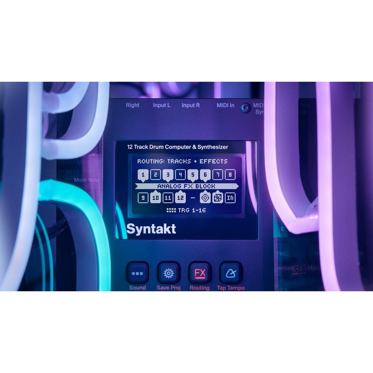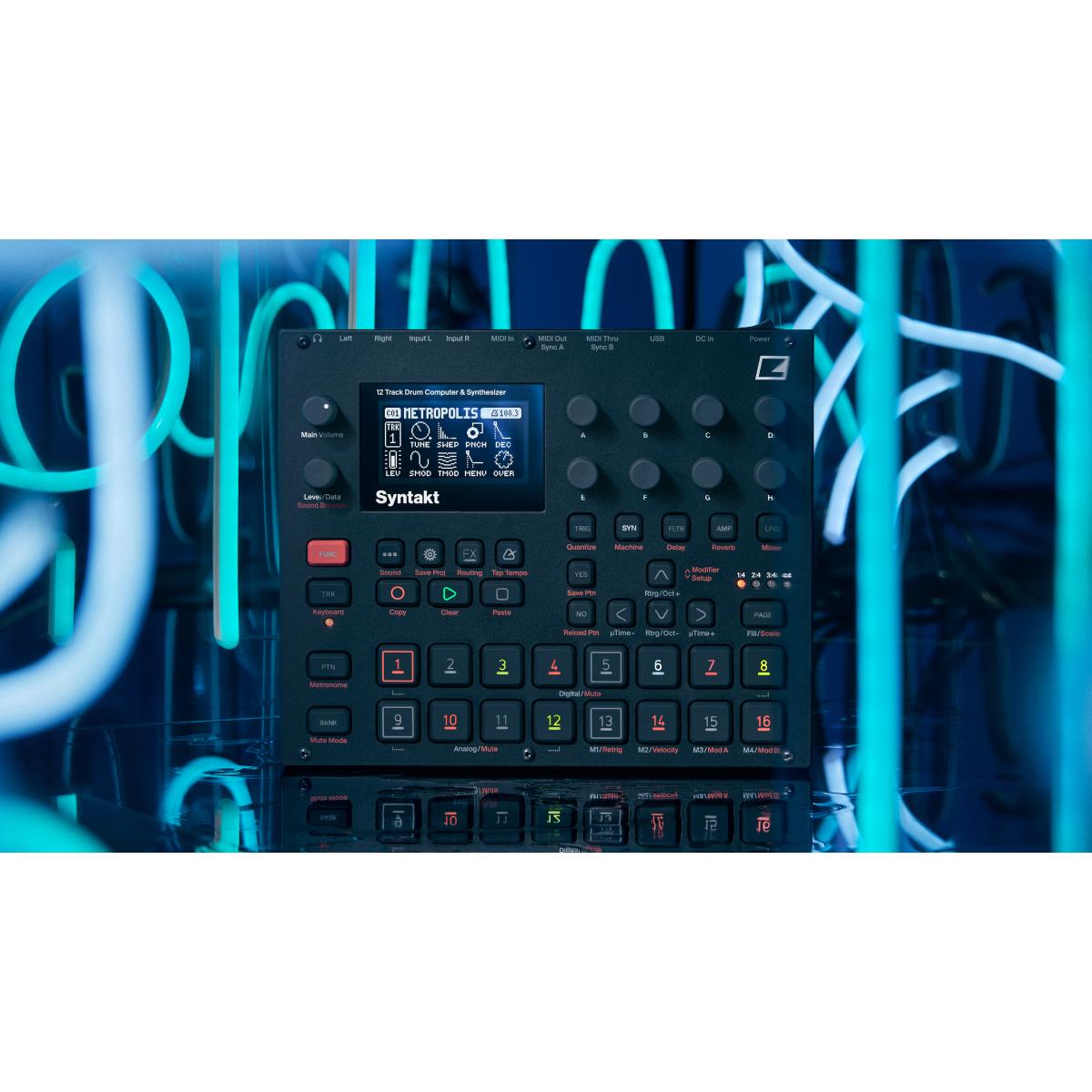 El Elektron Syntakt le ofrece un amplio conjunto de herramientas y le abre un nuevo mundo de exploración sónica, ofreciéndole la posibilidad de crear sonido, secuenciar e interpretar, todo en un mismo lugar. Compuesto por cuatro pistas analógicas y ocho digitales, el Syntakt puede utilizarse para crear melodías cautivadoras, sonidos de bajo masivos y secuencias de batería agresivas. Su enorme paleta sonora lo convierte en un producto imprescindible para cualquier productor musical/intérprete en directo serio.