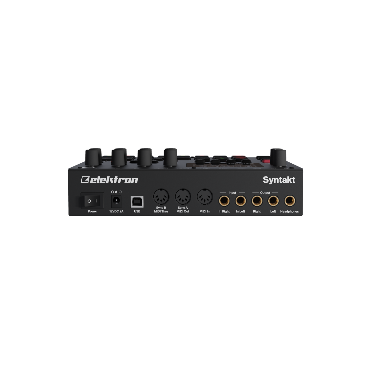 Desde el estudio hasta el escenario, el Elektron Syntakt ofrece todo lo que necesitas para crear e interpretar con la máxima confianza. Su diseño robusto y compacto puede caber en tu regazo, por lo que es muy portátil y perfecto para los músicos que se desplazan. La interfaz intuitiva cuenta con botones y controles claramente etiquetados, que te permiten realizar cambios informados en tu sonido de un vistazo. La parte trasera del Elektron Syntakt cuenta con una serie de conexiones analógicas y digitales que incluyen E/S MIDI (y Thru), así como conexiones TRS de E/S estéreo. También se incluye una conexión USB para que puedas utilizar el Syntakt con tu software musical favorito.