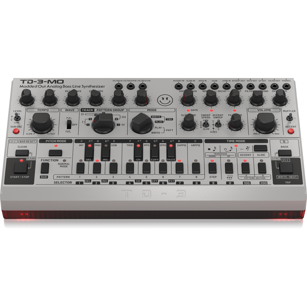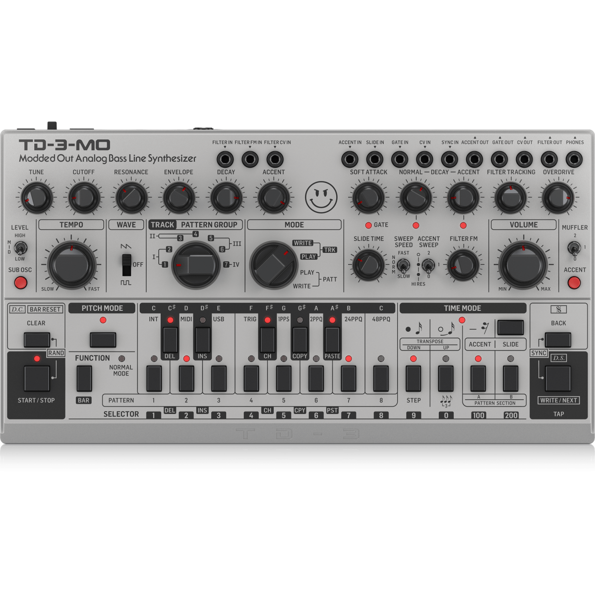 • -Perillas de control para Soft Attack, Normal- y Accent-Decay, Filter Tracking, Slide Time y Filter FM