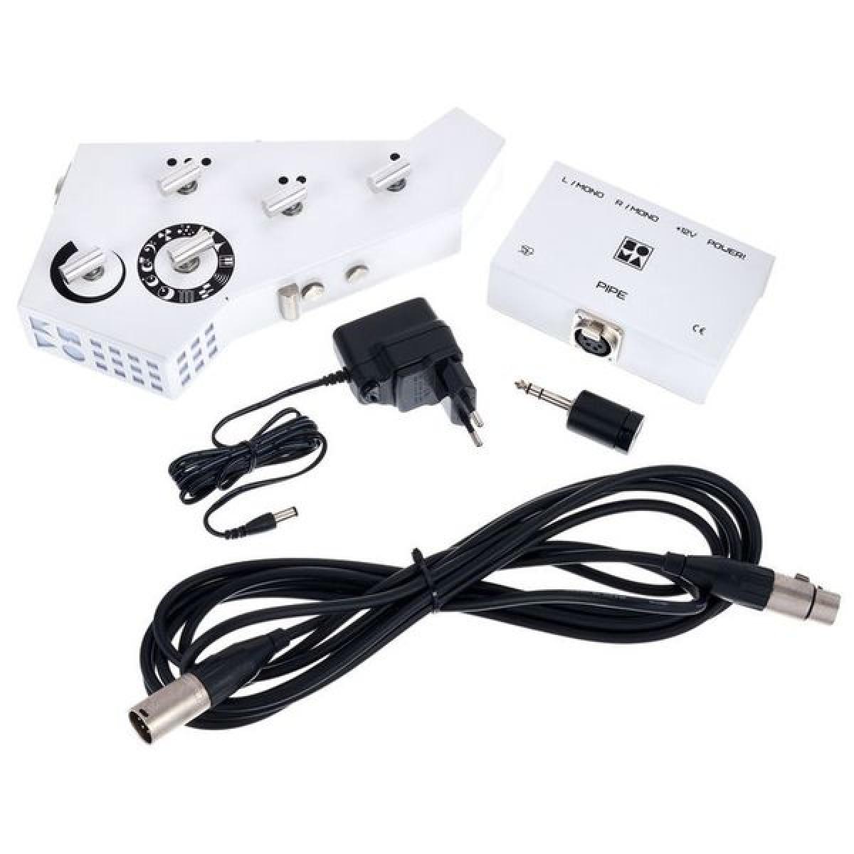 • Consta de dispositivo portátil con todos los controles, caja de conexiones con dos salidas de línea (jack de 6,3 mm) y micrófono intercambiable (otras características de sonido disponibles opcionalmente) ;