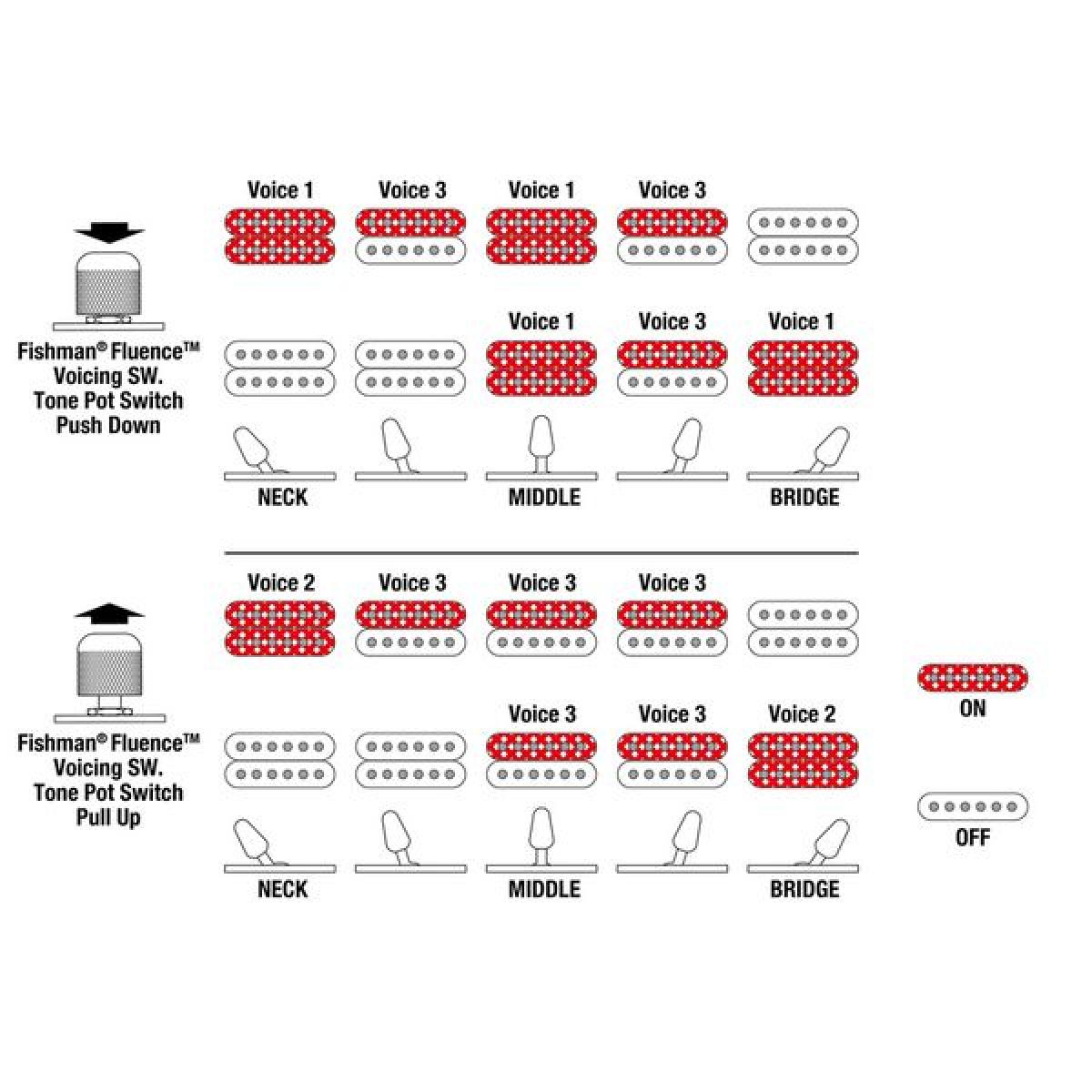 • Pastillas: 2 Fishman Fluence Tim Henson Signature Series (puente y mástil) ;
