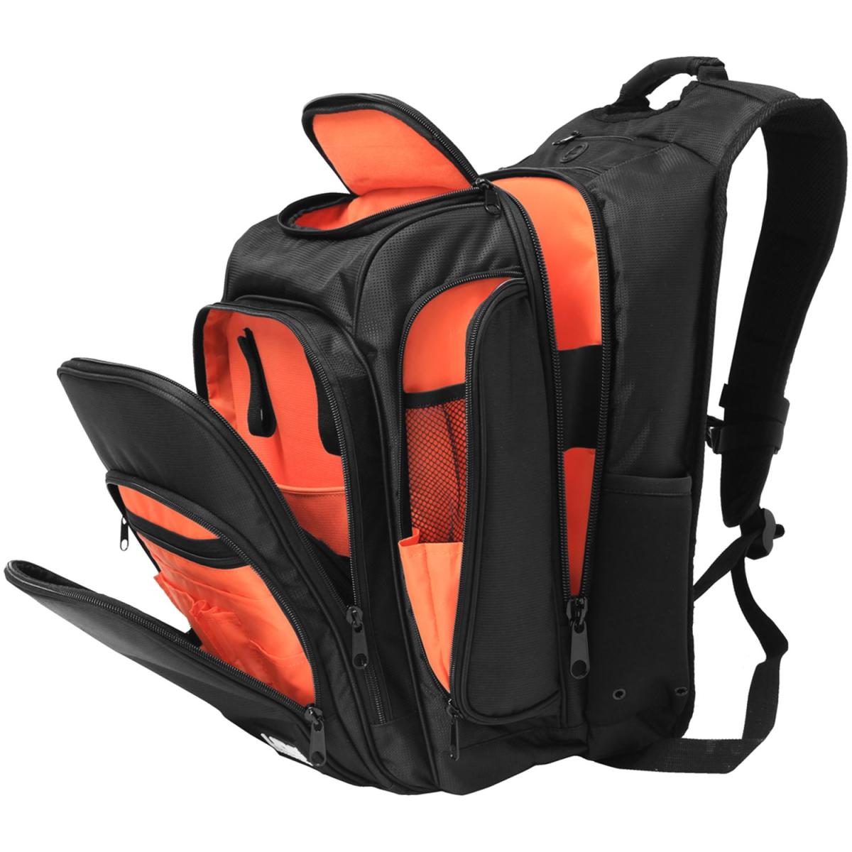 Mochila Ultimate DIGI especialmente diseñada para el DJ portátil. Fabricado con nailon de alta calidad resistente al agua, contiene un compartimento de entrada lateral inteligentemente diseñado para una computadora portátil de hasta 15,4 ”sin tener que pasar por el cuerpo principal de la bolsa. El compartimento principal de la bolsa puede contener una computadora portátil adicional y también puede contener un controlador MIDI de tamaño MASCHINE MK2 de Native Instruments. Hay una bolsa de interfaz desmontable y en la parte superior de la bolsa hay un bolsillo acolchado de acceso rápido para auriculares. Hay 5 compartimentos con cremallera para guardar de forma segura memorias USB, tarjetas SD, alambres y cables, adaptadores de corriente alterna, cámaras compactas, reproductores MP3 y otros accesorios. ColorNegro, naranja en el interiorPeso2,10 kg / 4,62 librasDimensiones exteriores cm: 33,5 x 48 x 27 | pulgadas: 13,2 x 18,9 x 10,6 Dimensiones internas cm: 30 x 42 x 13 | pulgadas: 11,8 x 16,5 x 5,1 Material Nylon 450D resistente al agua Protección Varios acolchados utilizados Compartimento frontal adicional con panel de organización y bolsa desmontable para interfaz de audio 5 bolsillos exteriores para artículos personales esenciales, incluido uno con conexión para auriculares para reproductores de MP3 Correas de hombro curvadas en S para máxima comodidad .Se adapta a portátiles de hasta 15,4 ", LP Pioneer DDJ-SP1, WeGO 3/4 NI Maschine MK2 / Jam Ableton Push / Push2 Akai APC40 MK2, MPD232, MPD32 Numark Omni Control, Stealth Control, Party Mix Reloop Beatmix, Digital Jockey 2/3 , Mixage IE Hercules DJControl Wave, DJConsule 4MX Gemini Slate 4, Roland Aira MX-1, TR-707 Stanton DJC.4 Vestax VCI-300 / MK2, VCI-380 Interfaz de audio o reproductor MP3 / MP4, libros y revistas